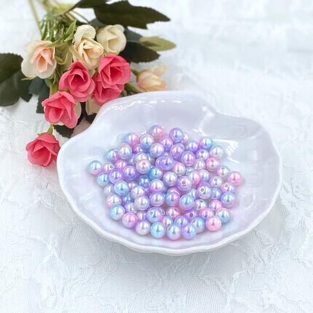・10個 10mm グラデ紫&ピンク&ミントパール調ビーズ カスタム可