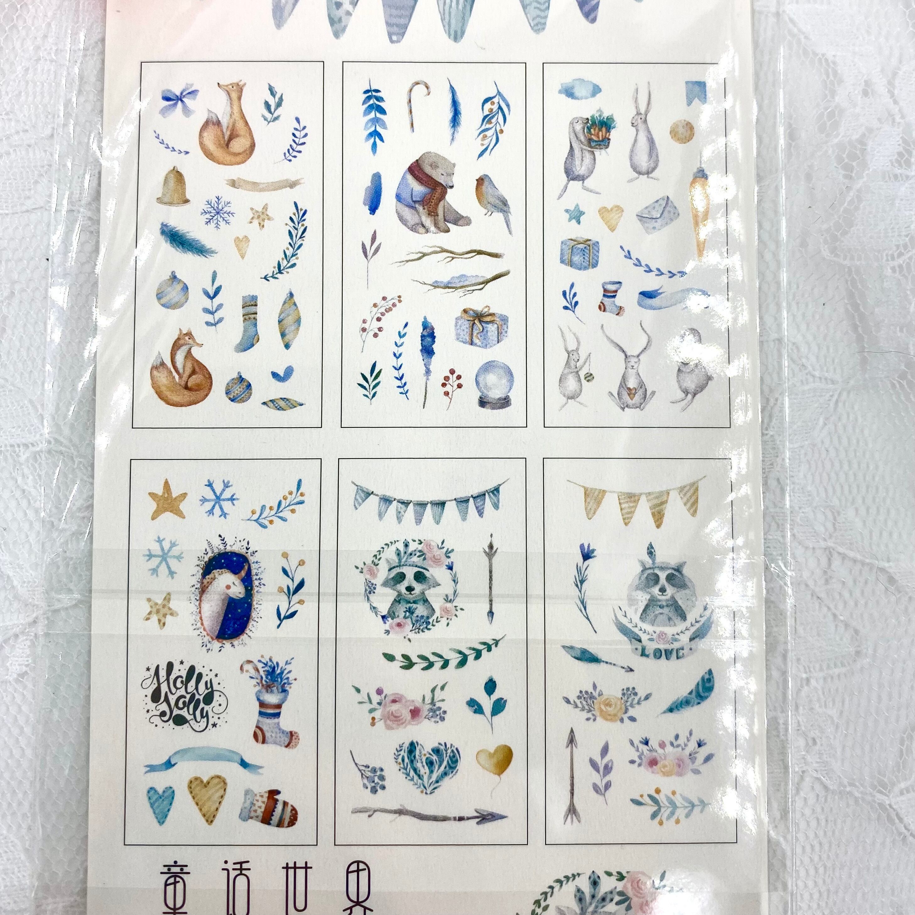 アニマル&グリーン コラージュ ステッカー 6枚セット