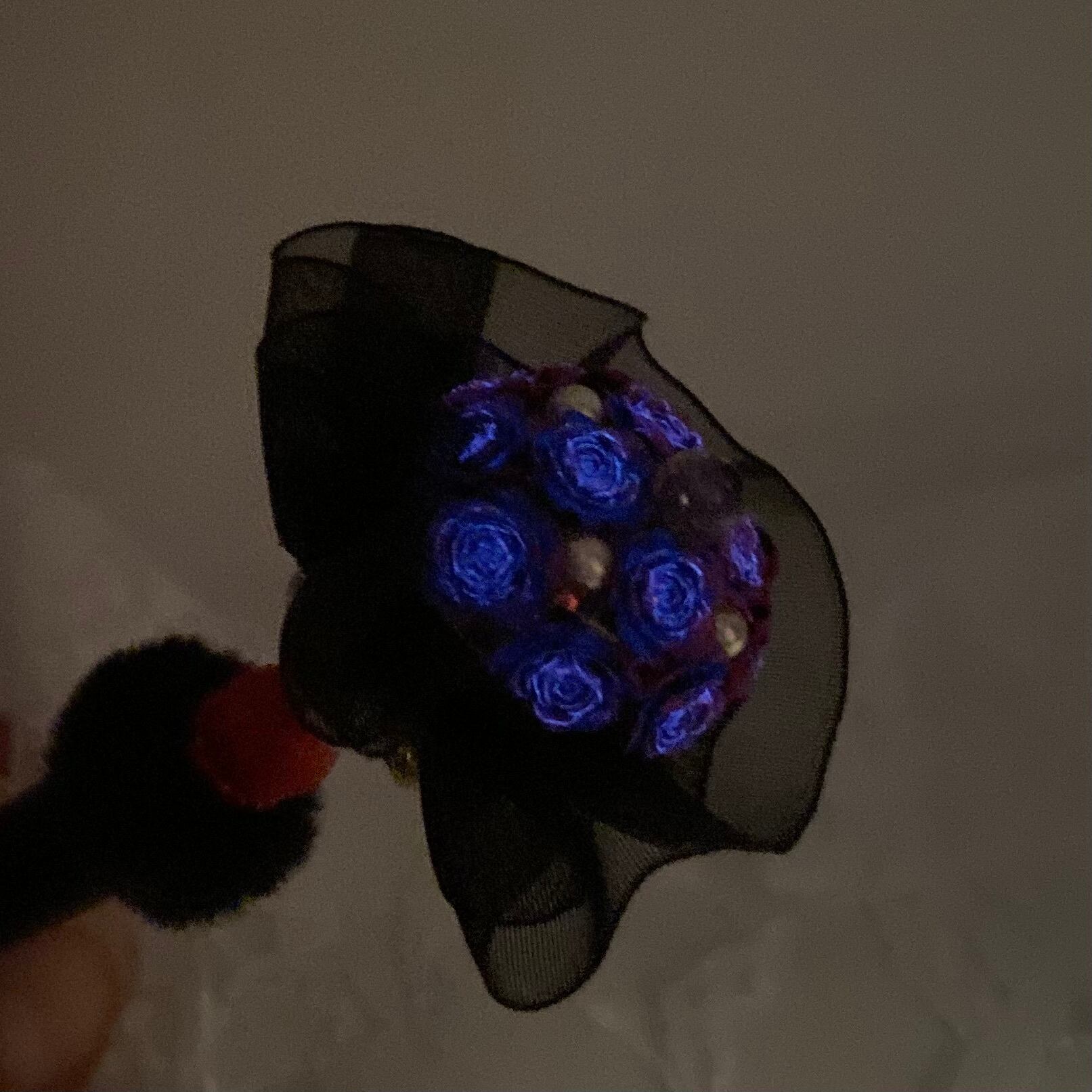 132 カスタムボールペン完成品 蓄光黒赤薔薇花束・ふわふわ黒ボールペン