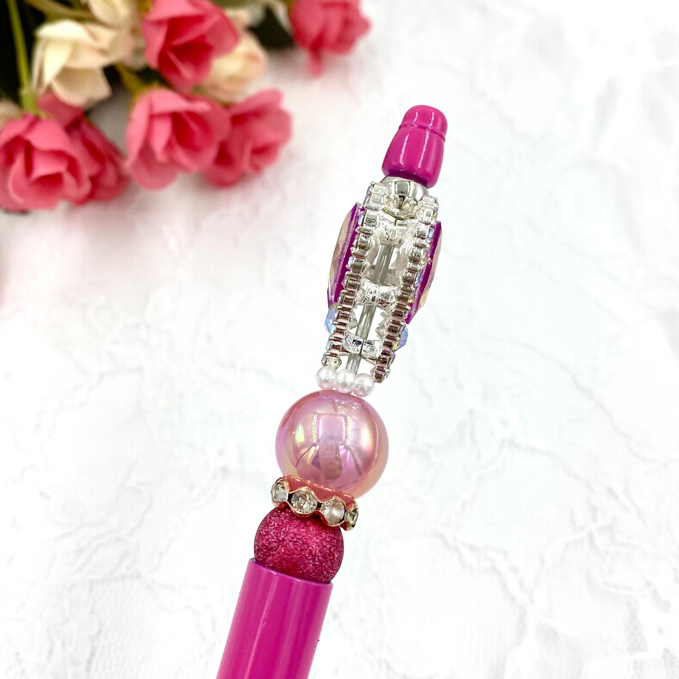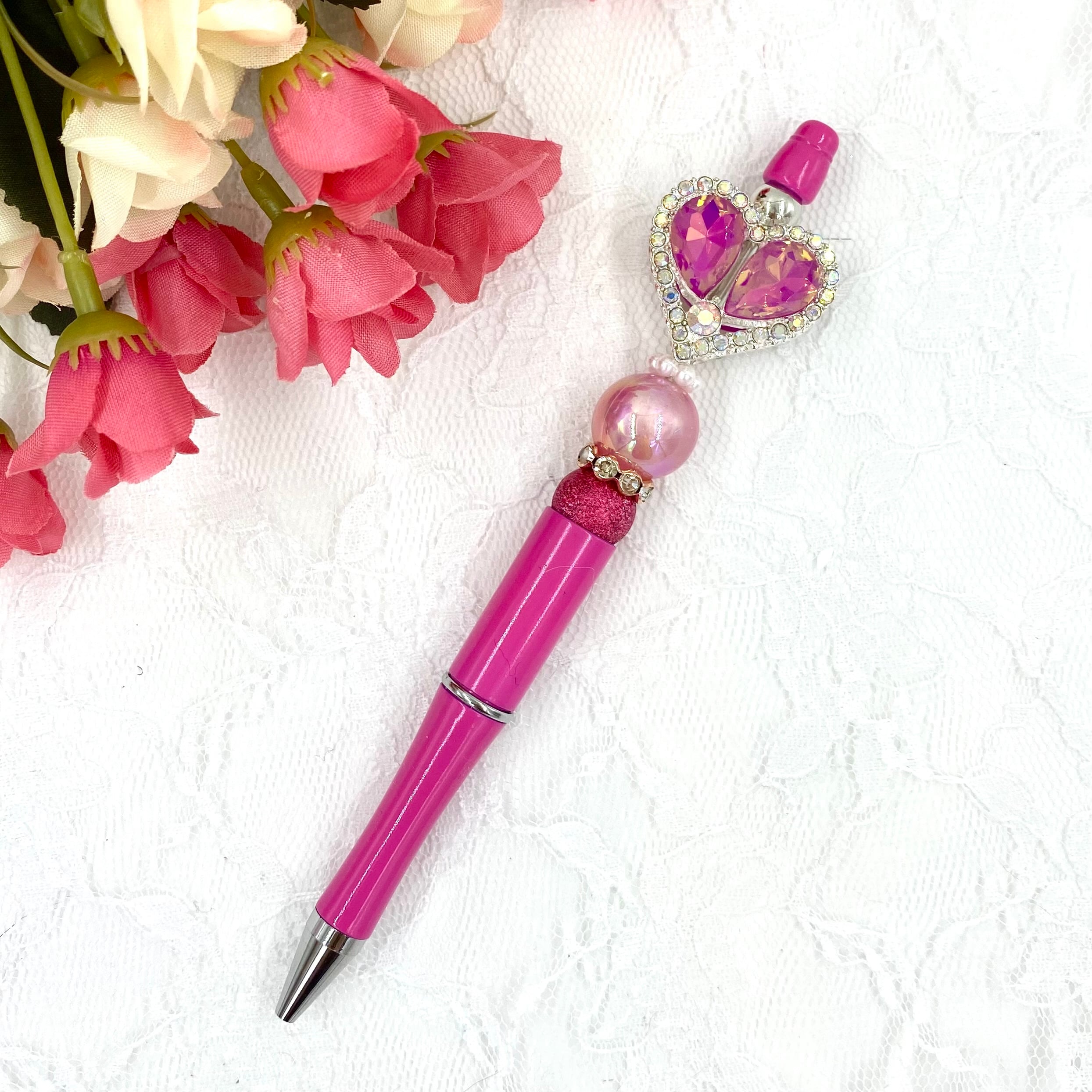 150 カスタムボールペン完成品 スパンコールハートファンシービーズ&ホットピンクボールペン