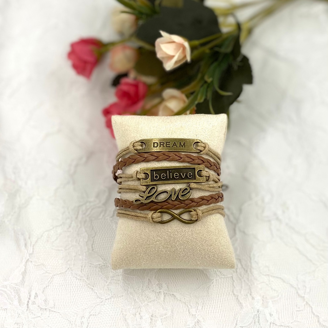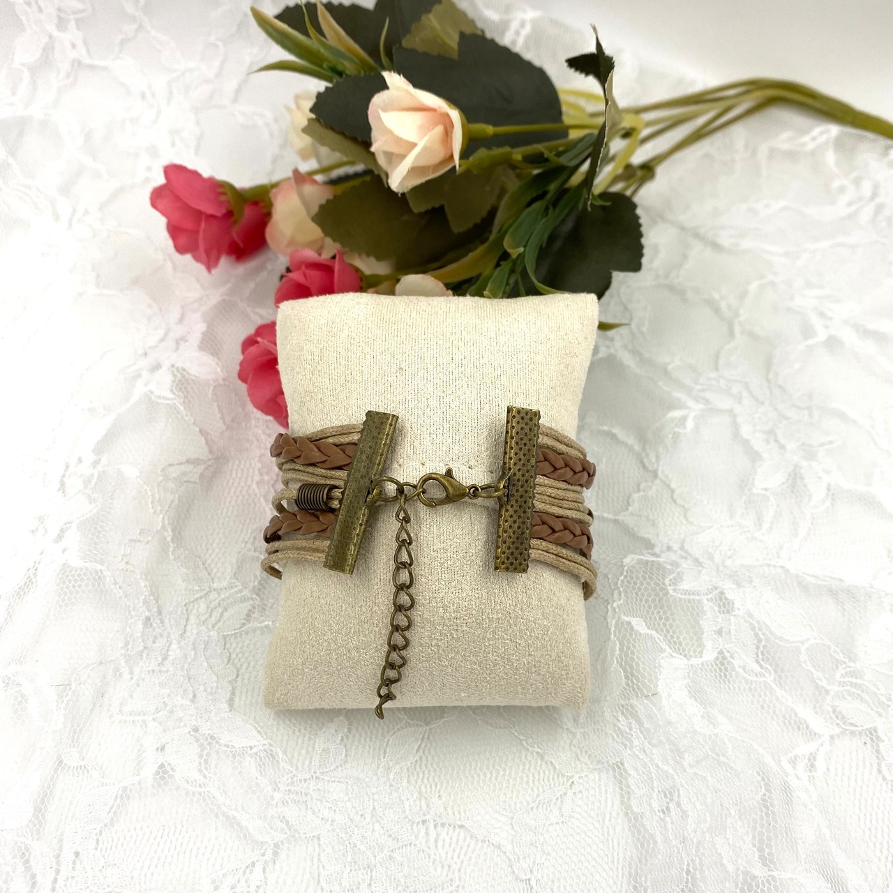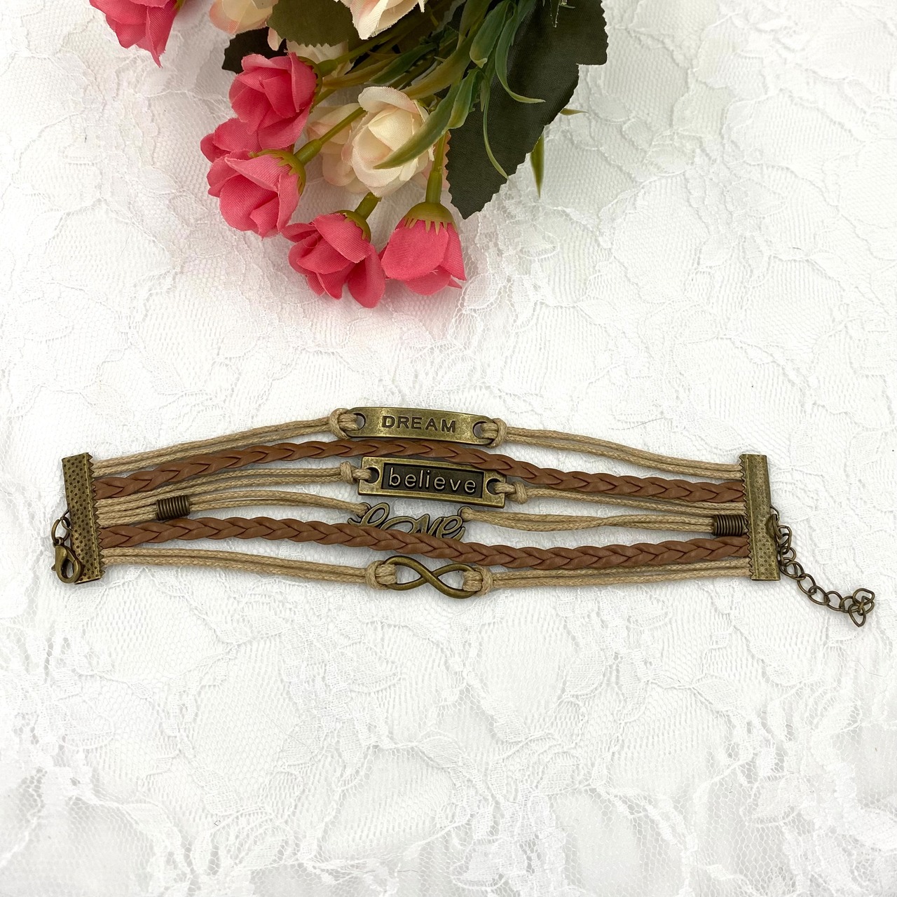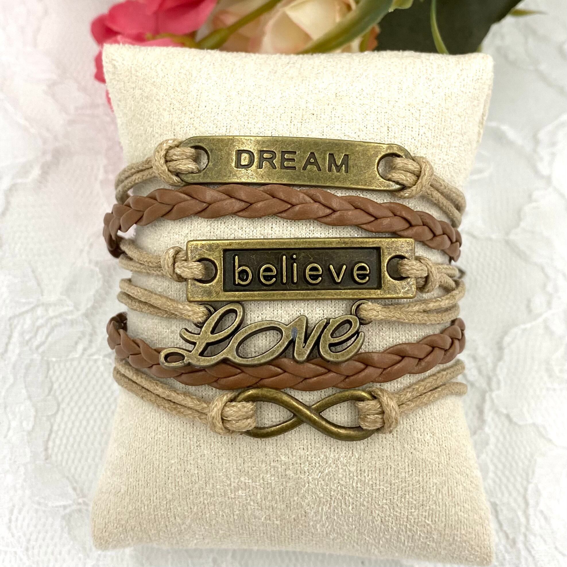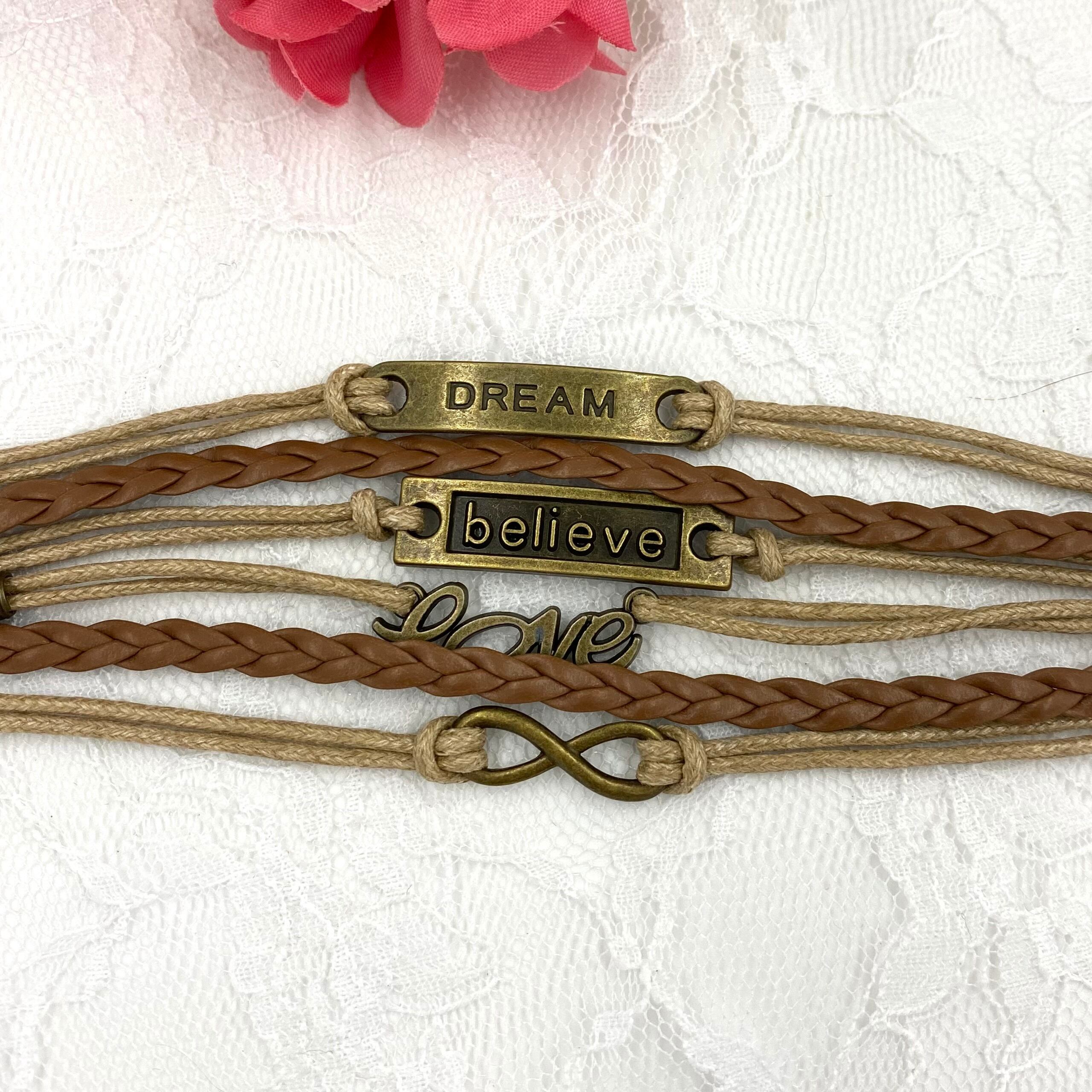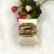 6連合皮メッセージブレスレット 約17cm+6cm 男女両用