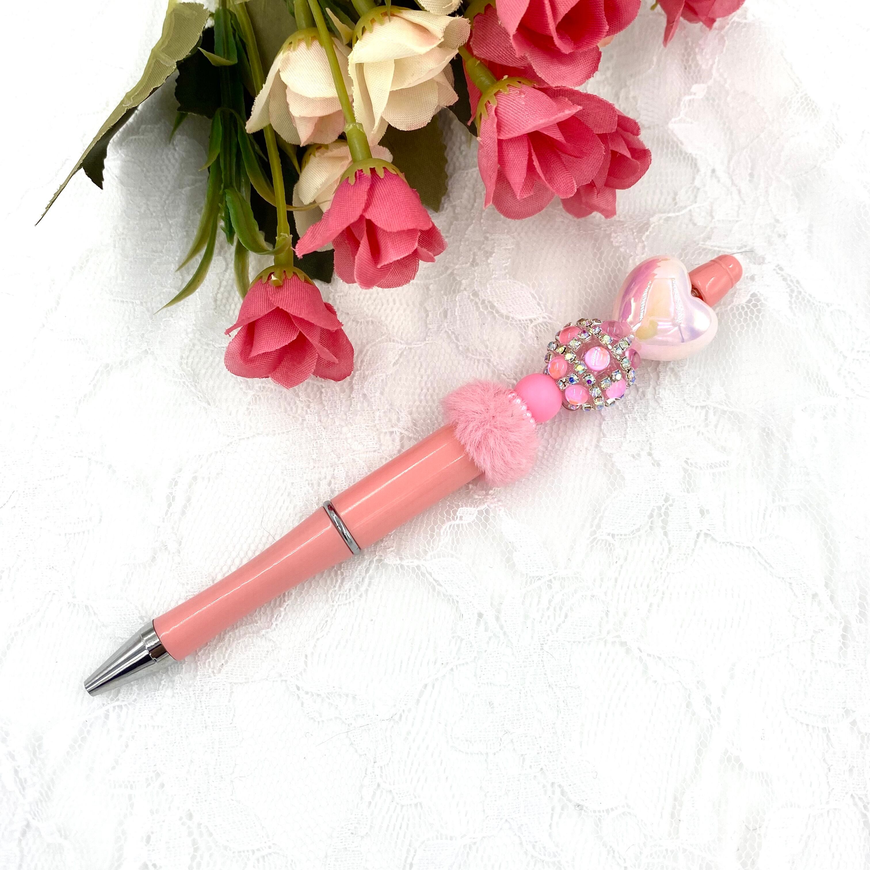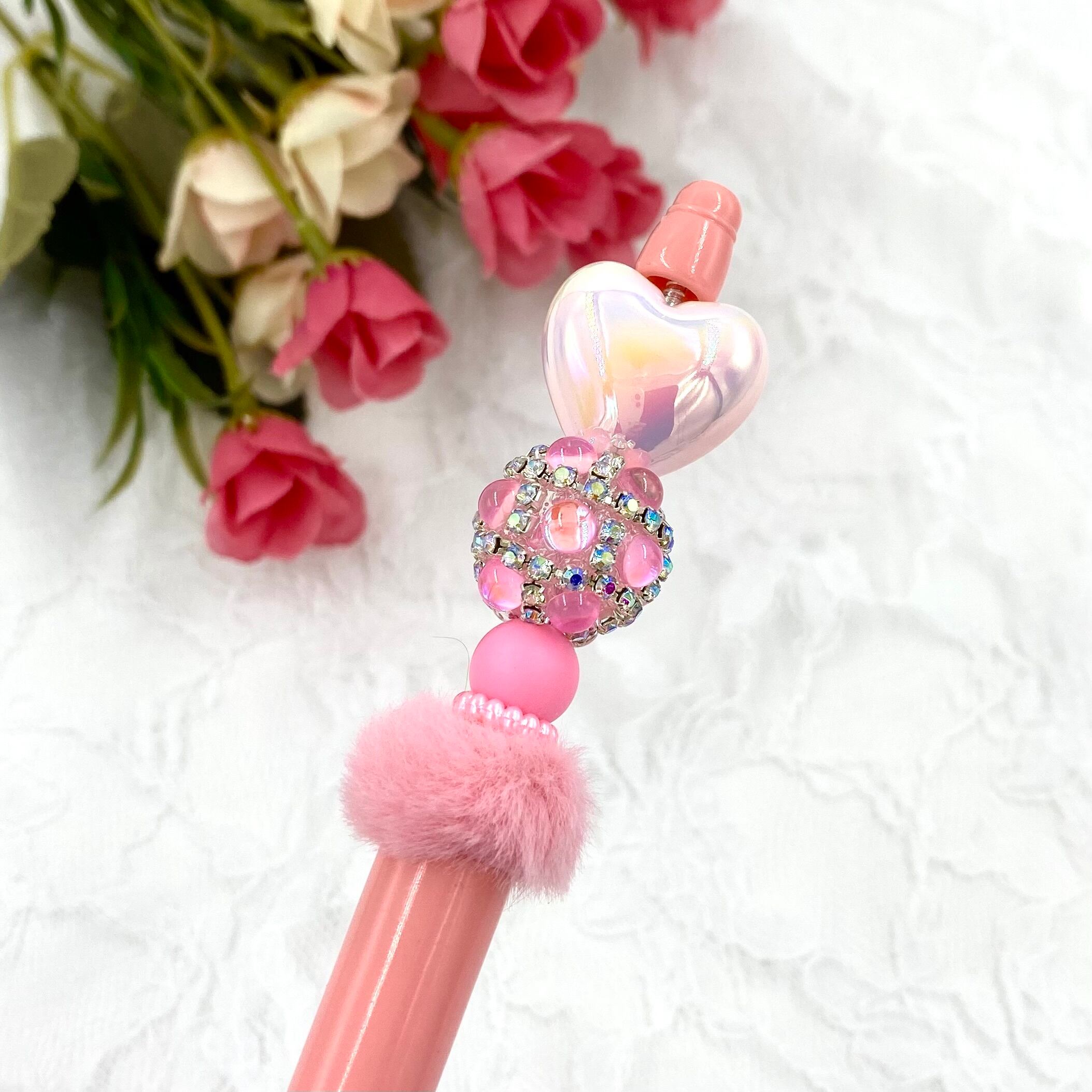 160 カスタムボールペン完成品 蓄光ハートビーズ&ピンクボールペン