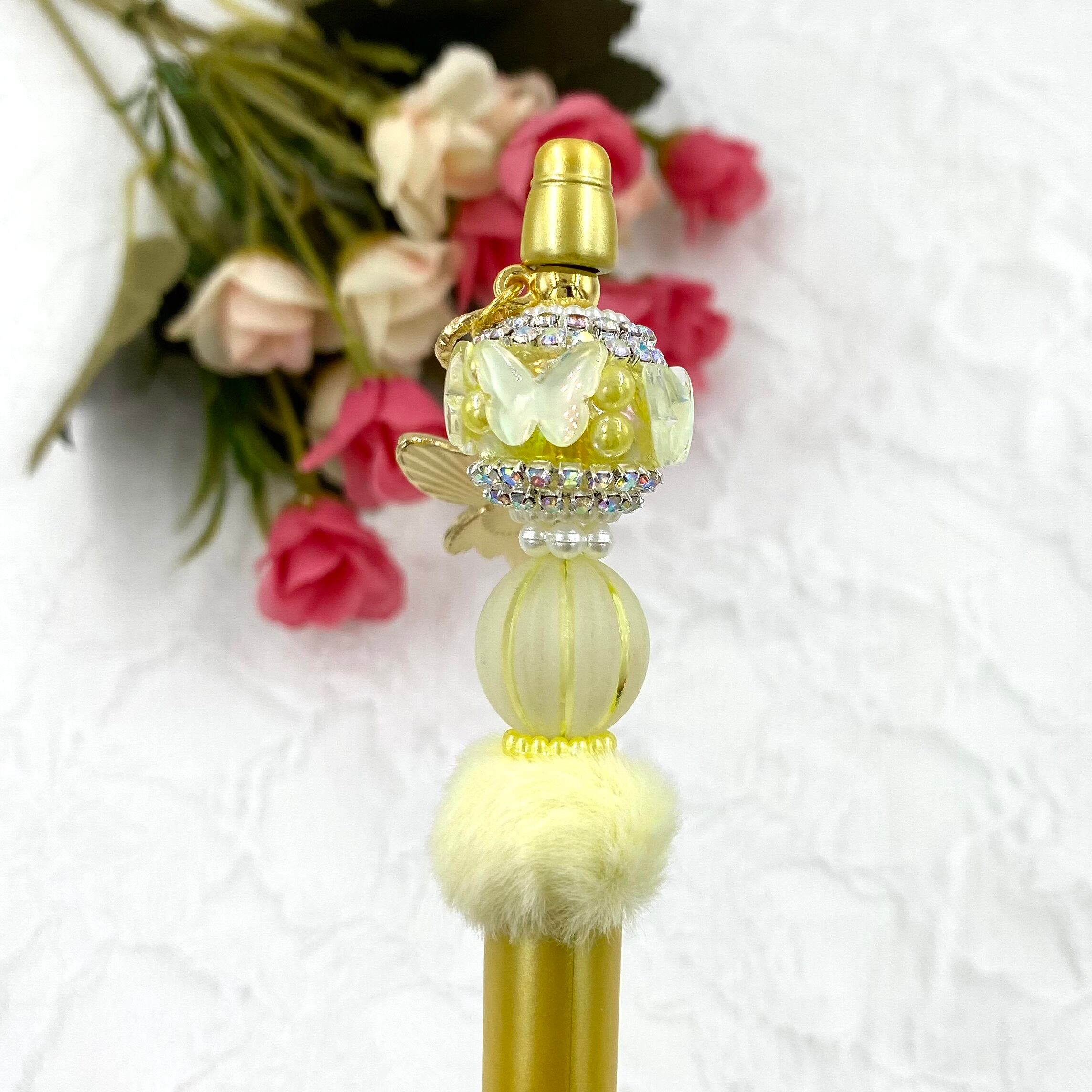 163 カスタムボールペン完成品 蝶々ファンシービーズ&ゴールドボールペン 妖精チャーム付き