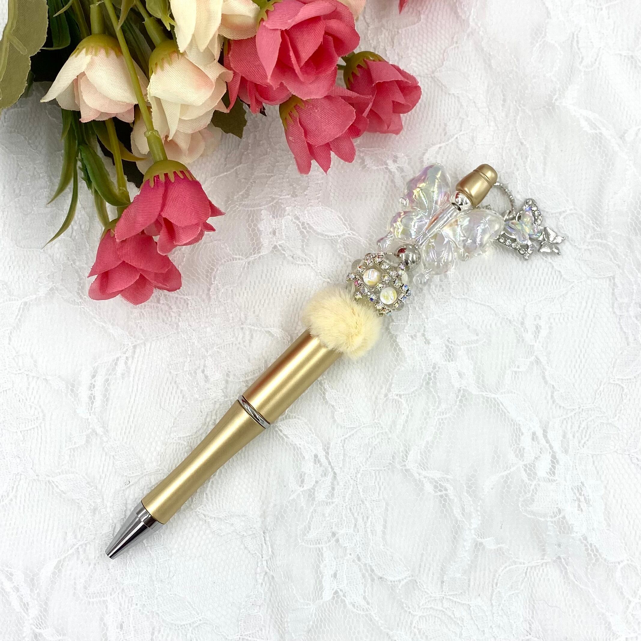 162 カスタムボールペン完成品 蝶ビーズ&クラシックゴールドボールペン 蝶チャーム付き