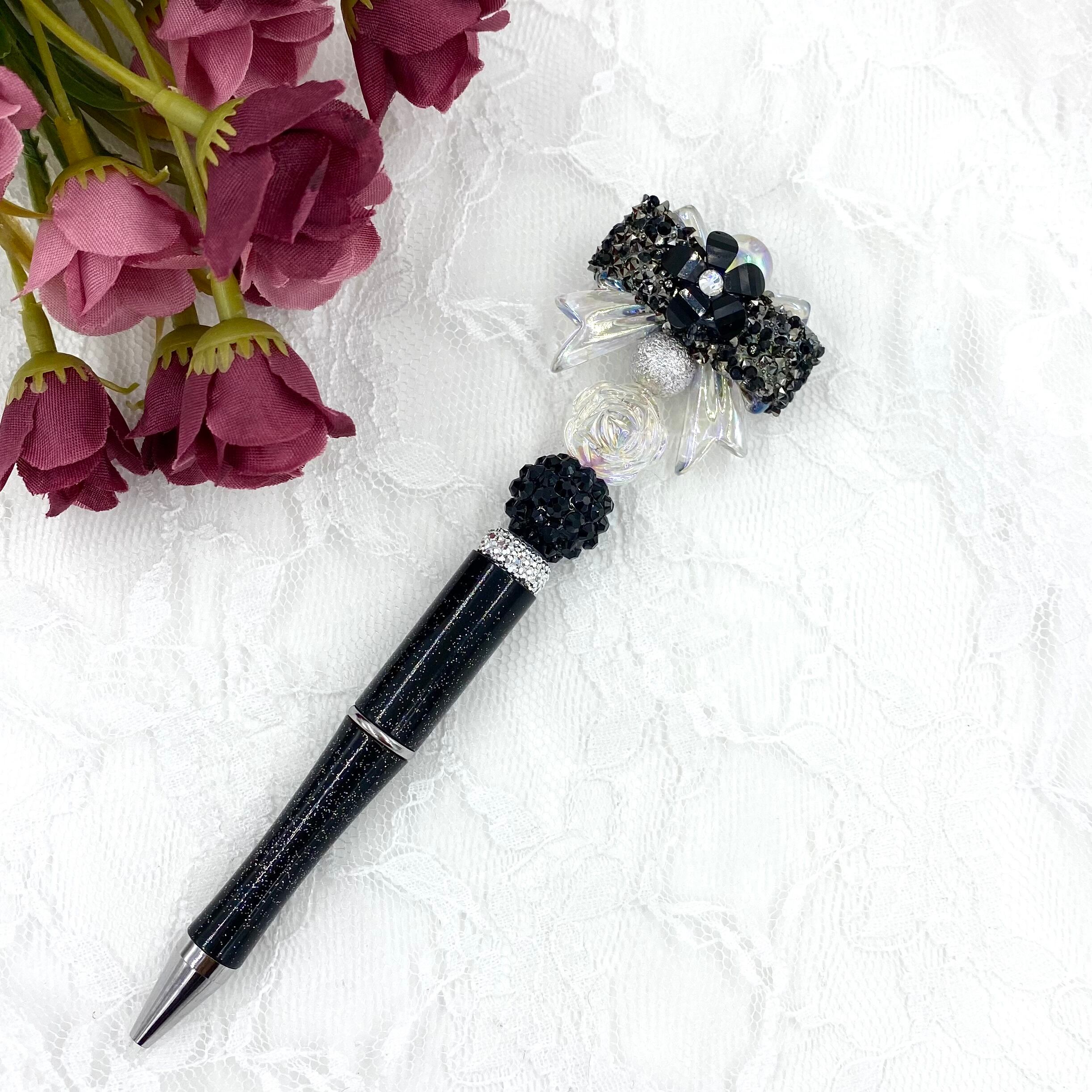 164 カスタムボールペン完成品 シュガーリボンビーズ&ブラックラメボールペン