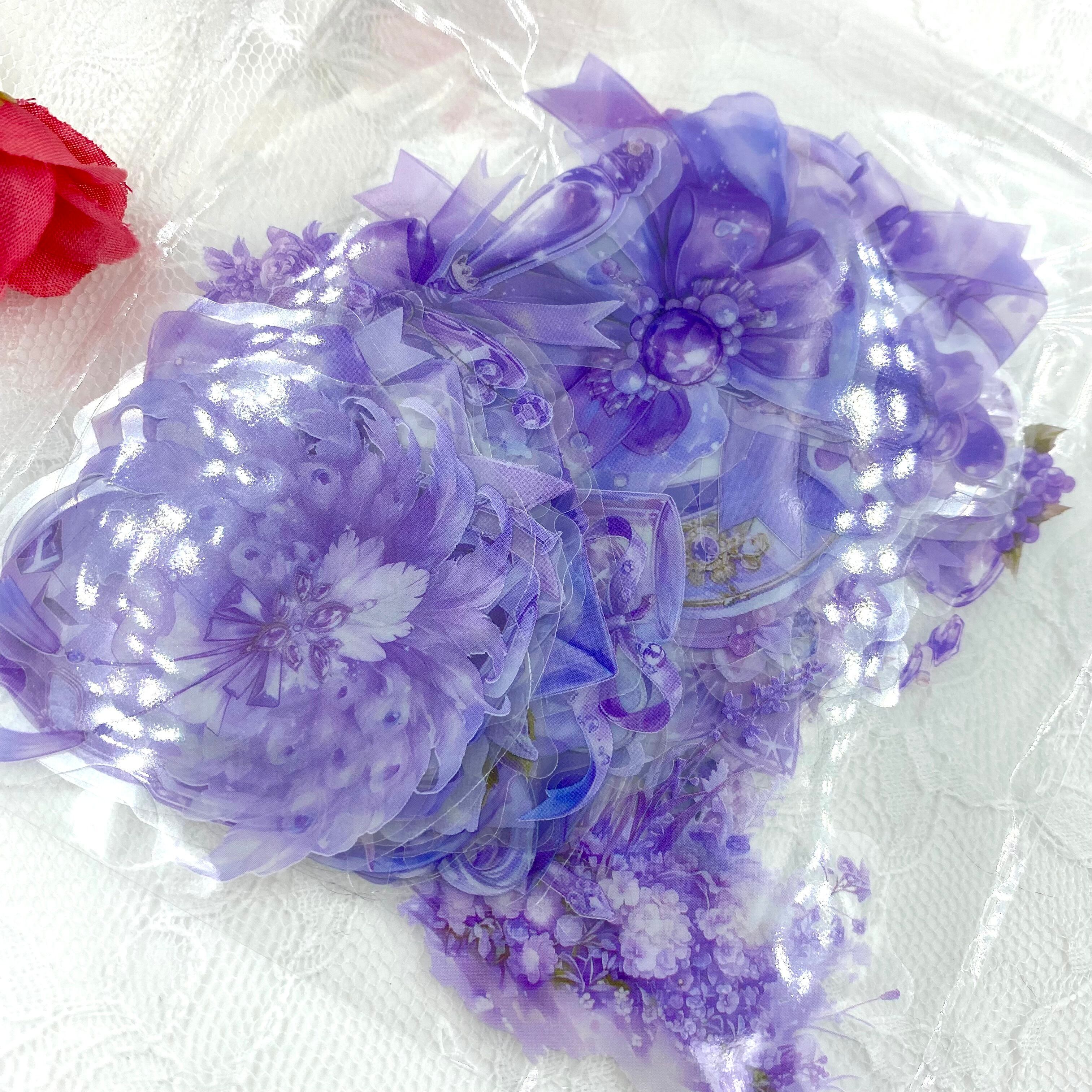 12 opp ラベンダーカラーステッカー コラージュ 50枚