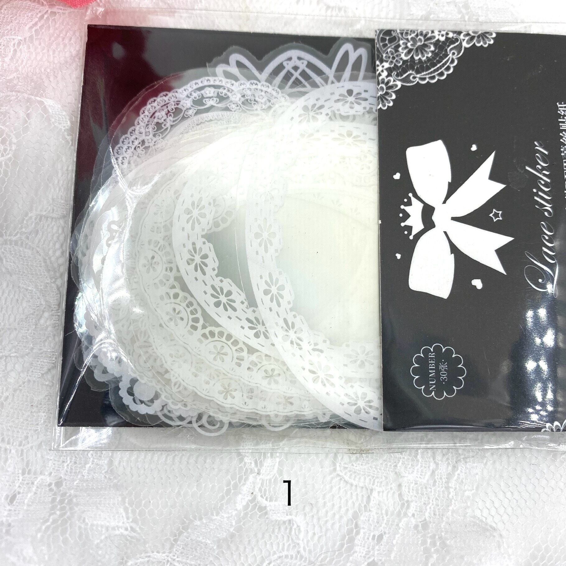 41 oppホワイトレースフレームステッカー 30枚入り コラージュ素材