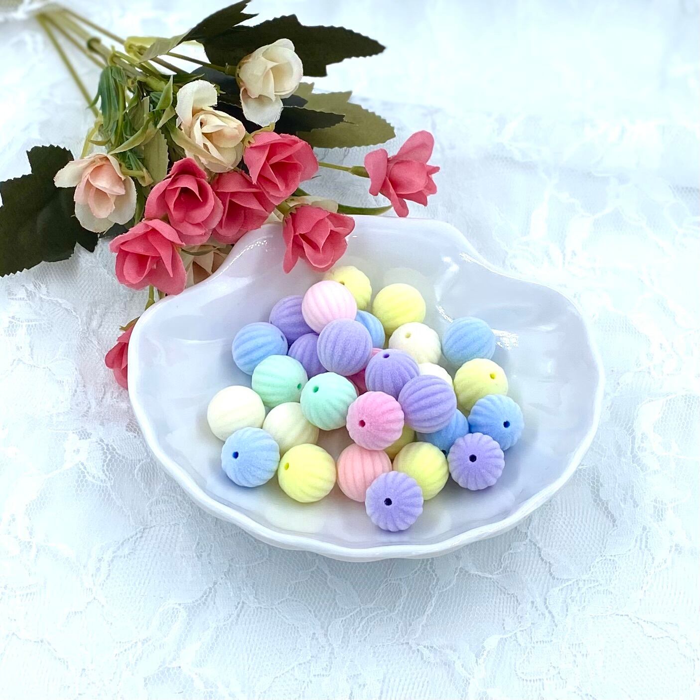 3-2 かぼちゃフロッキービーズ 16mm カスタム可