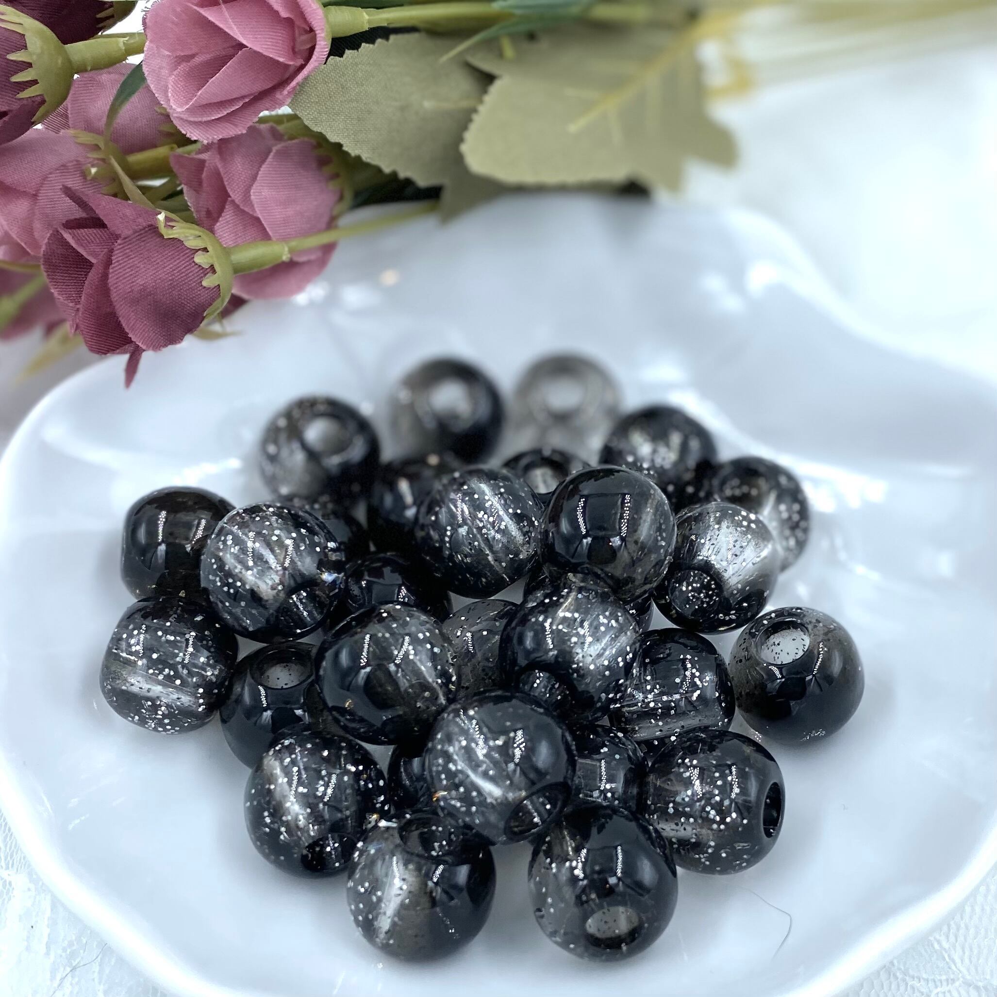 2-34 16mmラメ入り黒グラデーションビーズ カスタム可