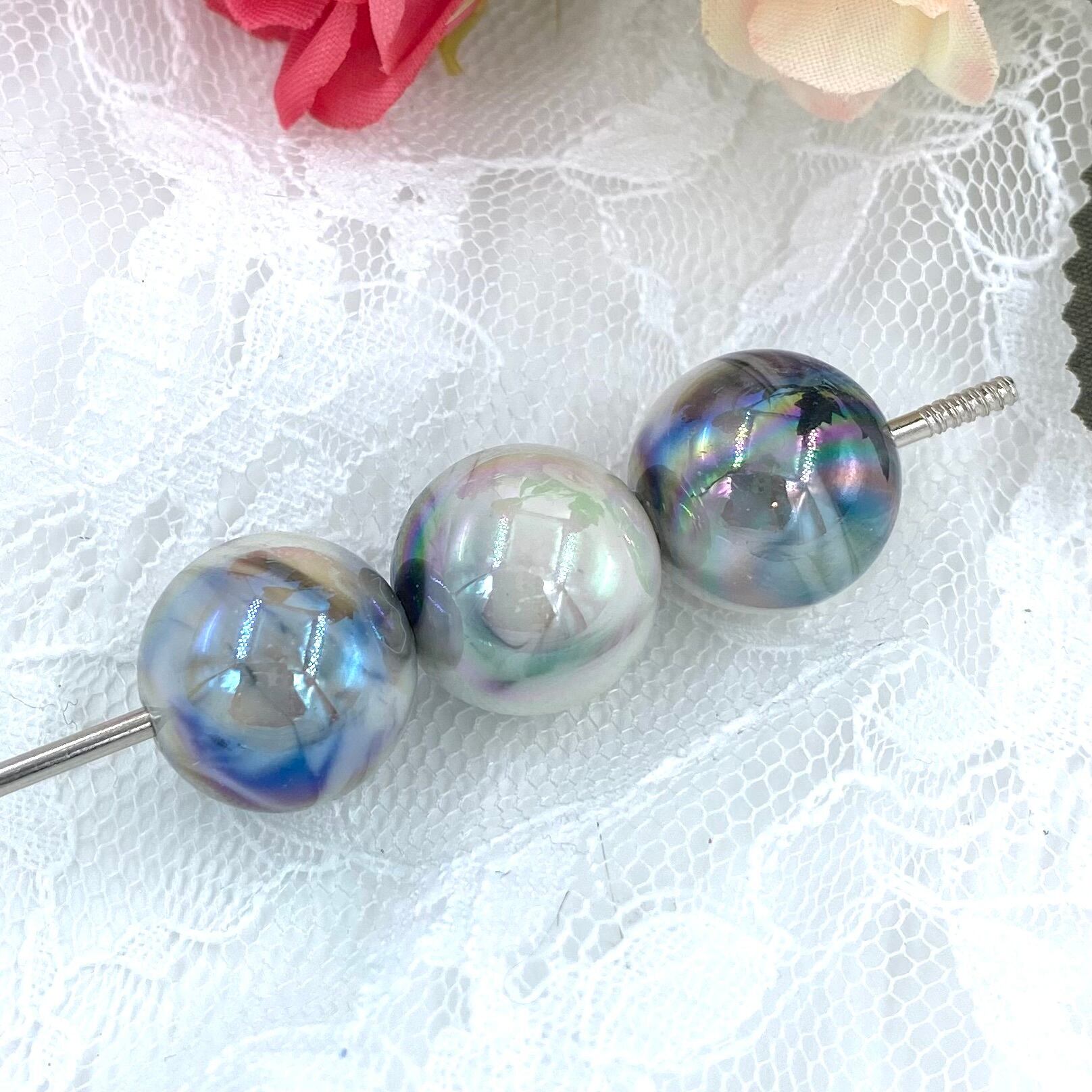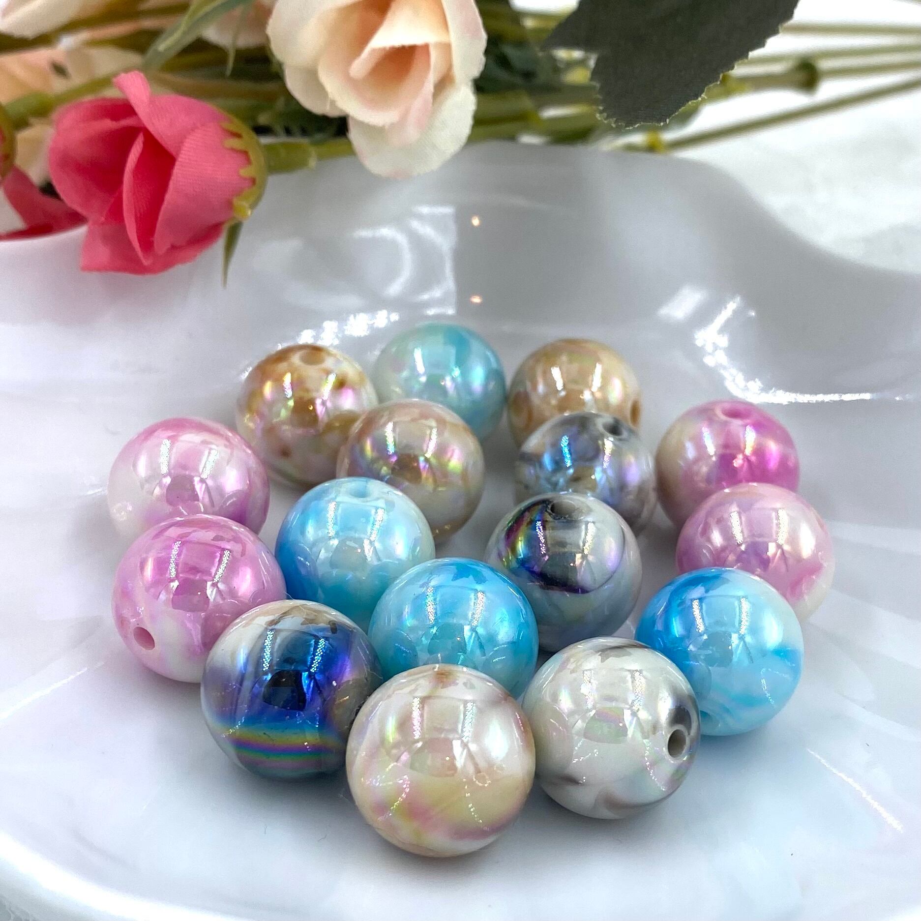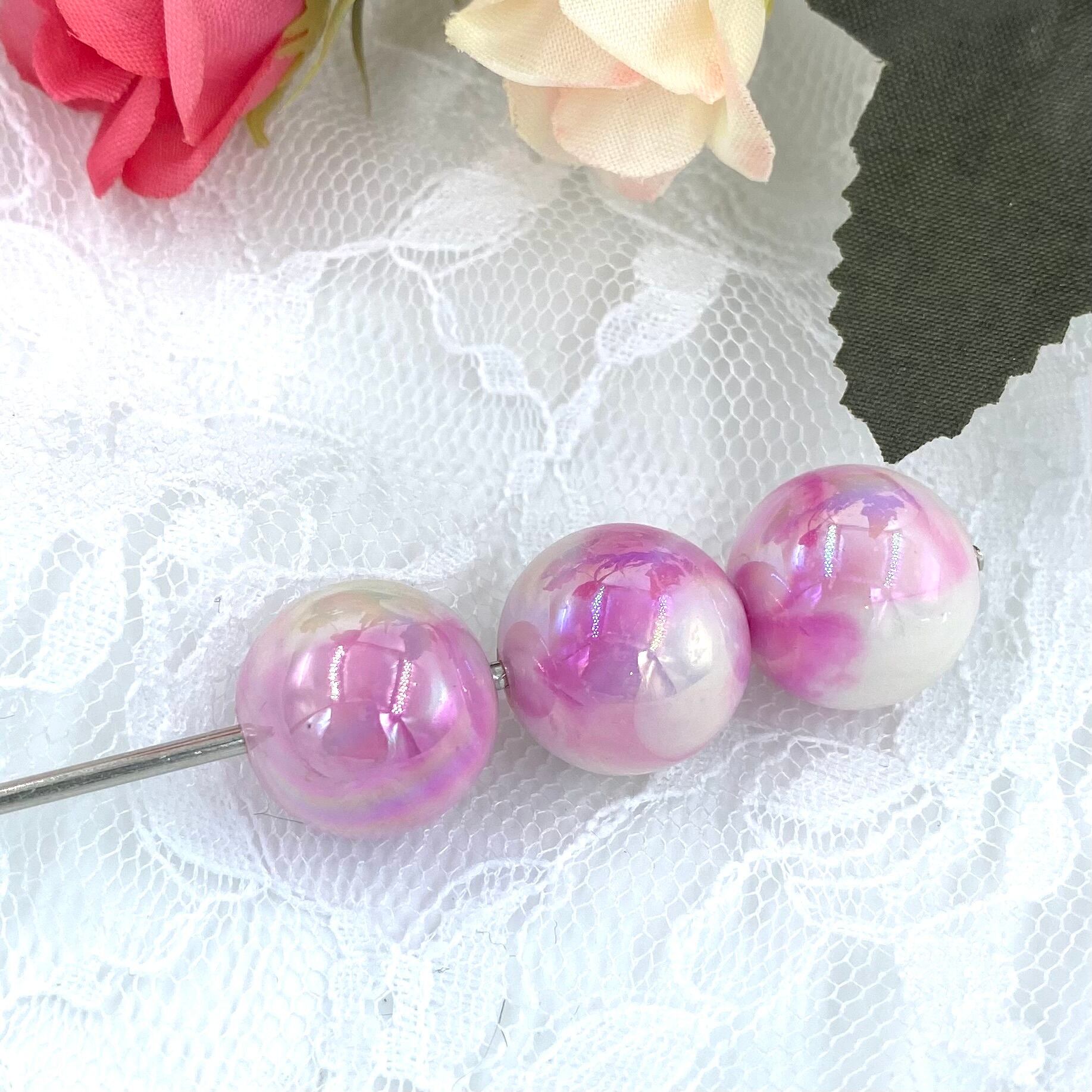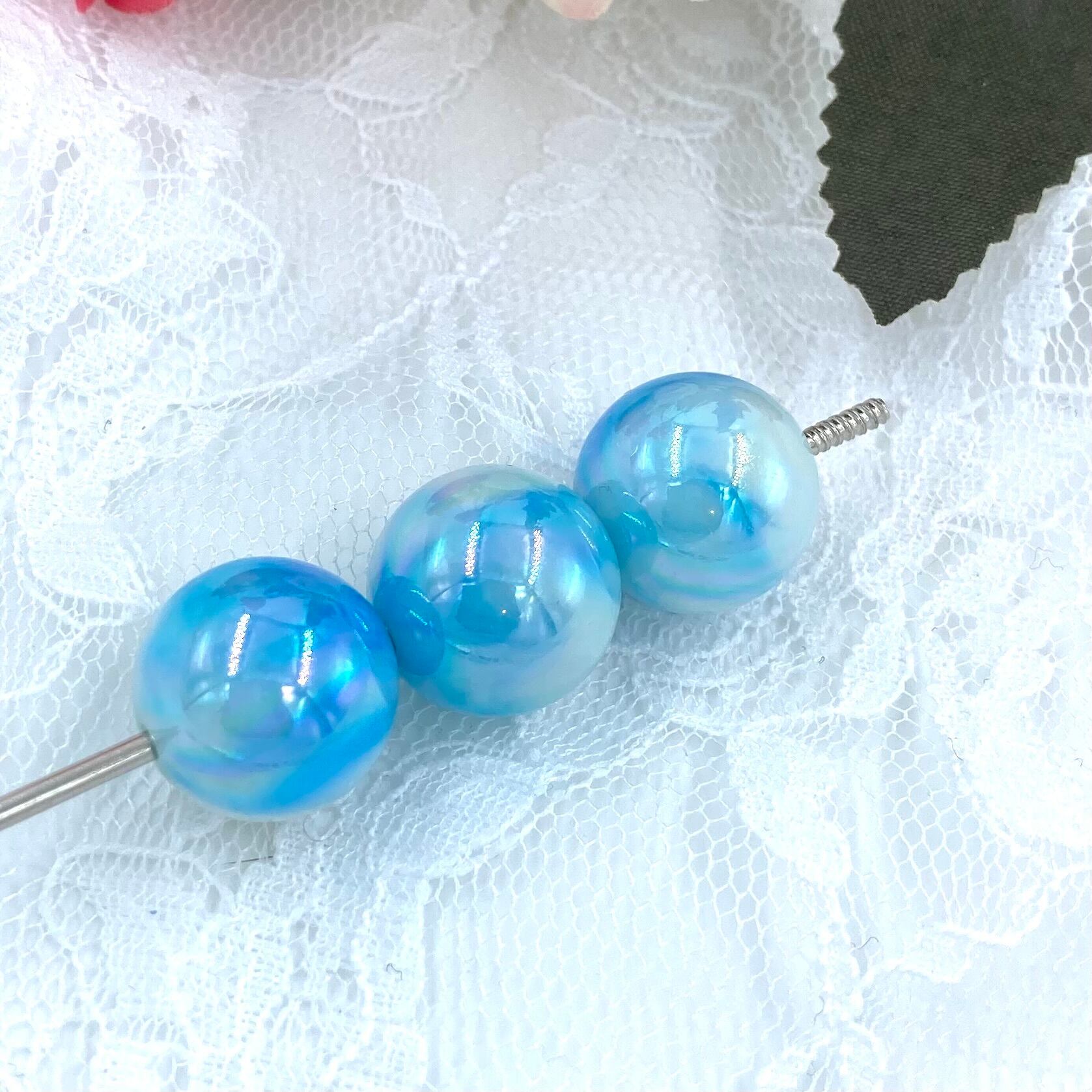 2-37 16mm マーブルUV加工ビーズ 2個 カスタム可