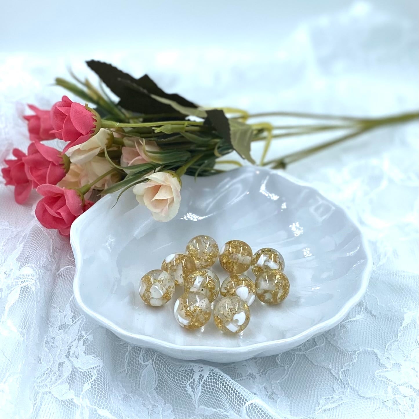 2-41 16mm白ハート入りゴールドラメビーズ カスタム可