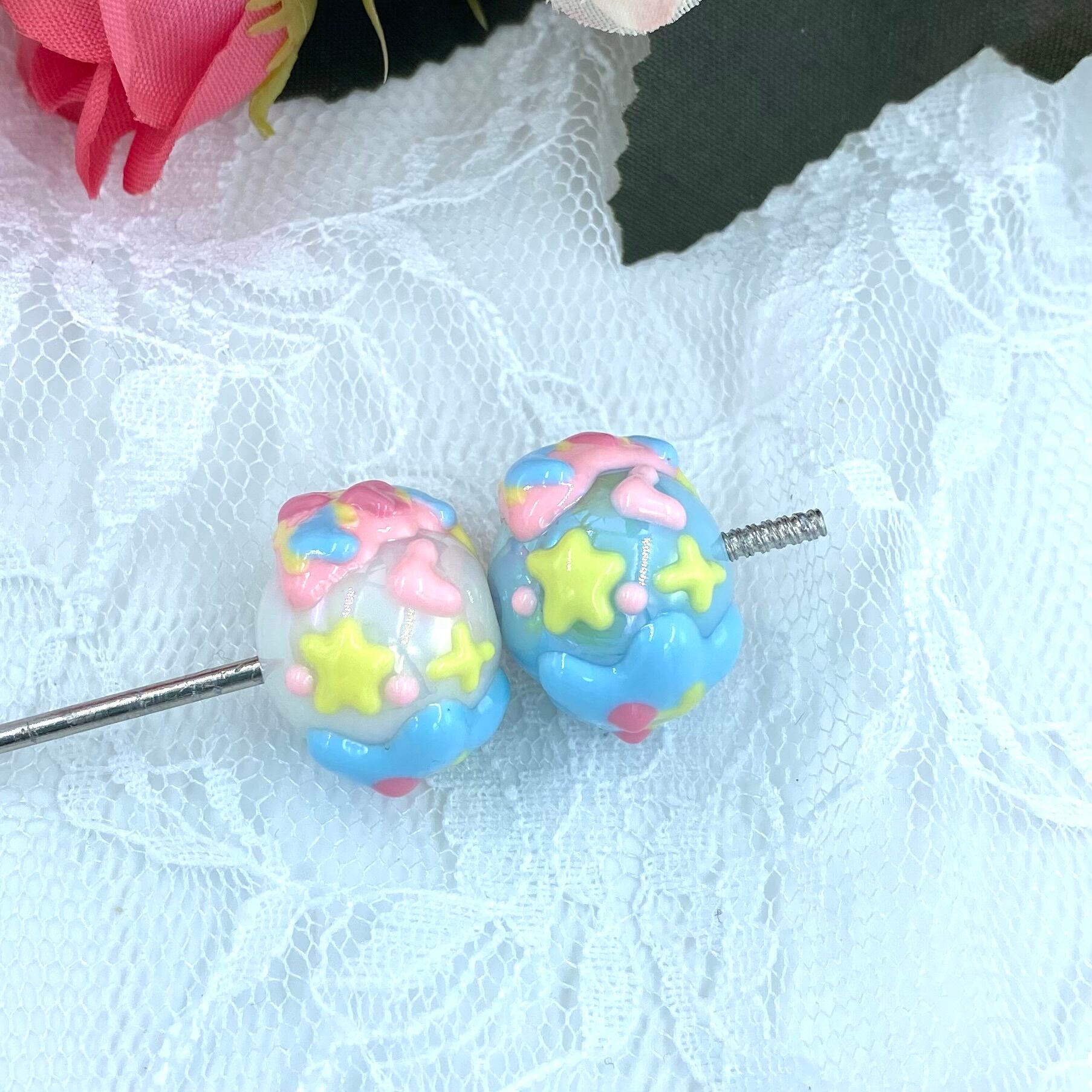 ・18-10 星&ハート手書きペイントビーズ カスタム可