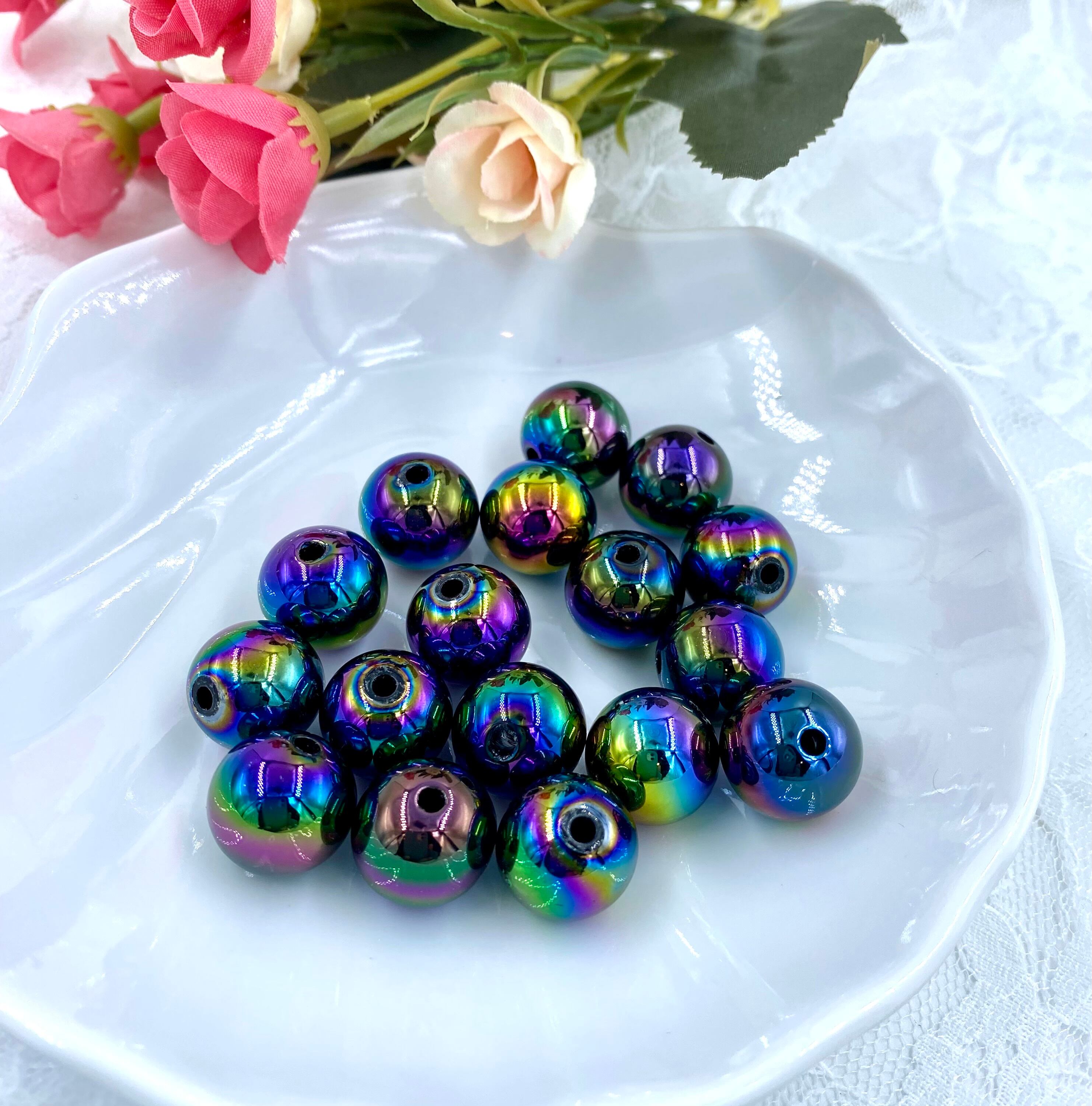 2-42 黒オーロラ加工ビーズ 2個 カスタム可