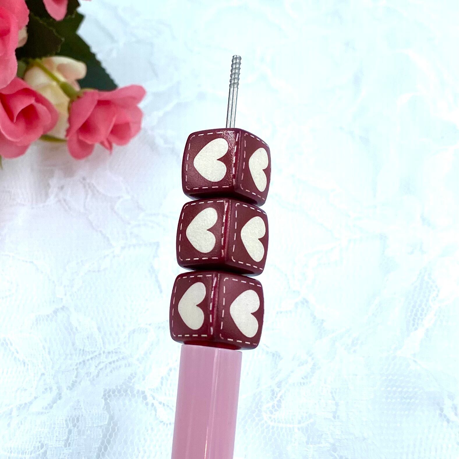 ・19-3 スクエア赤ビーズ カスタムボールペン可