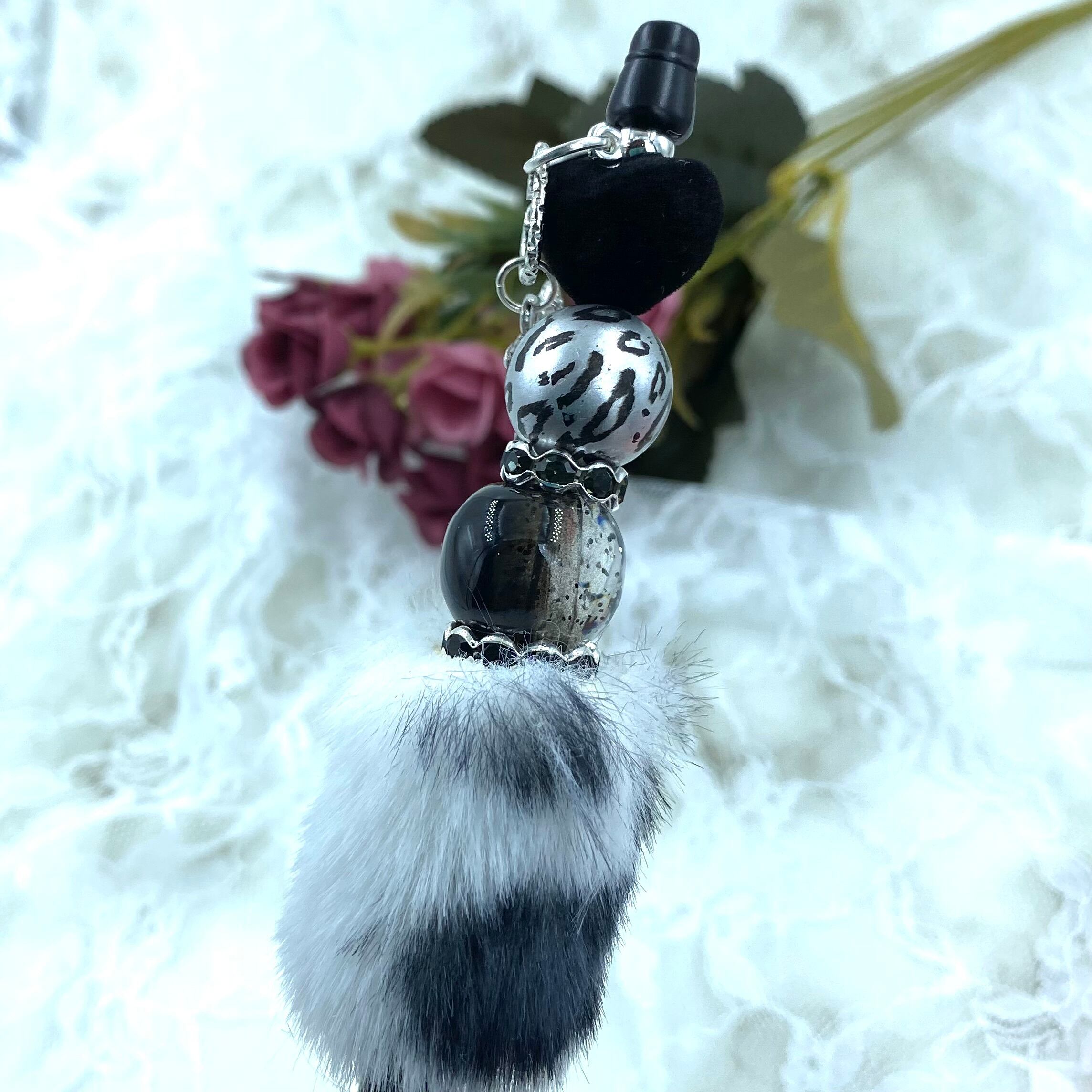 ・13 カスタムボールペン 完成品 ファーブラック チャーム付き