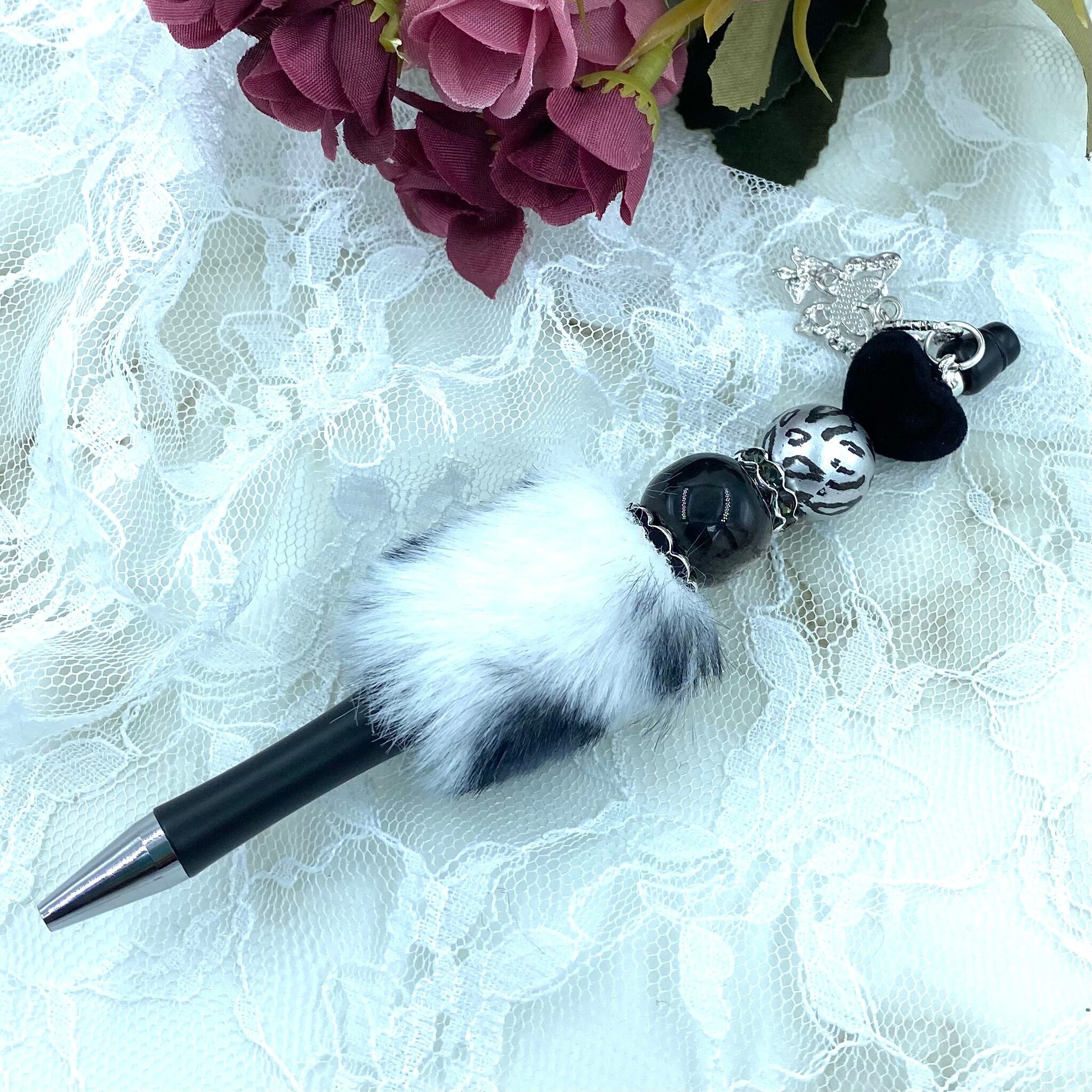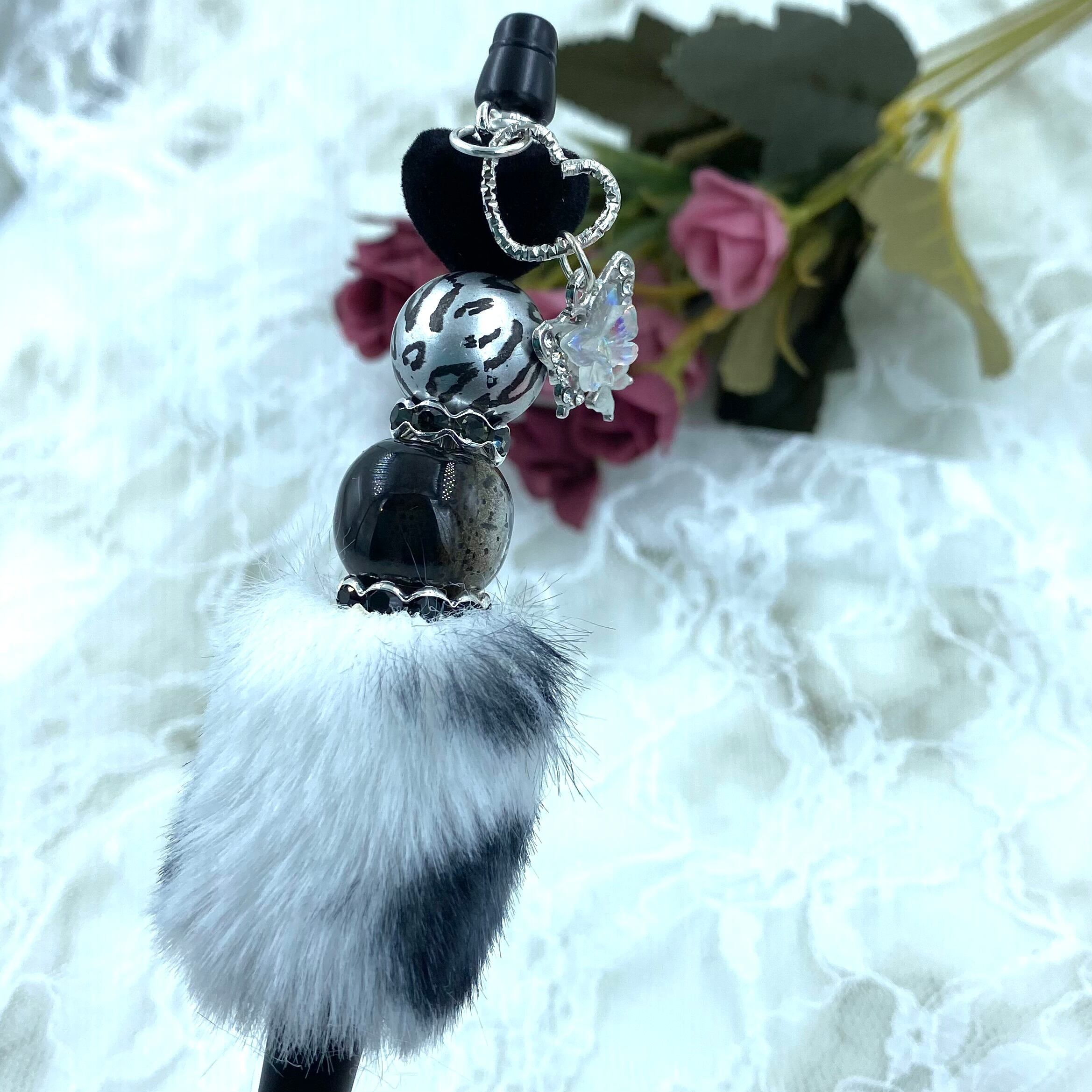 13 カスタムボールペン 完成品 ファーブラック チャーム付き
