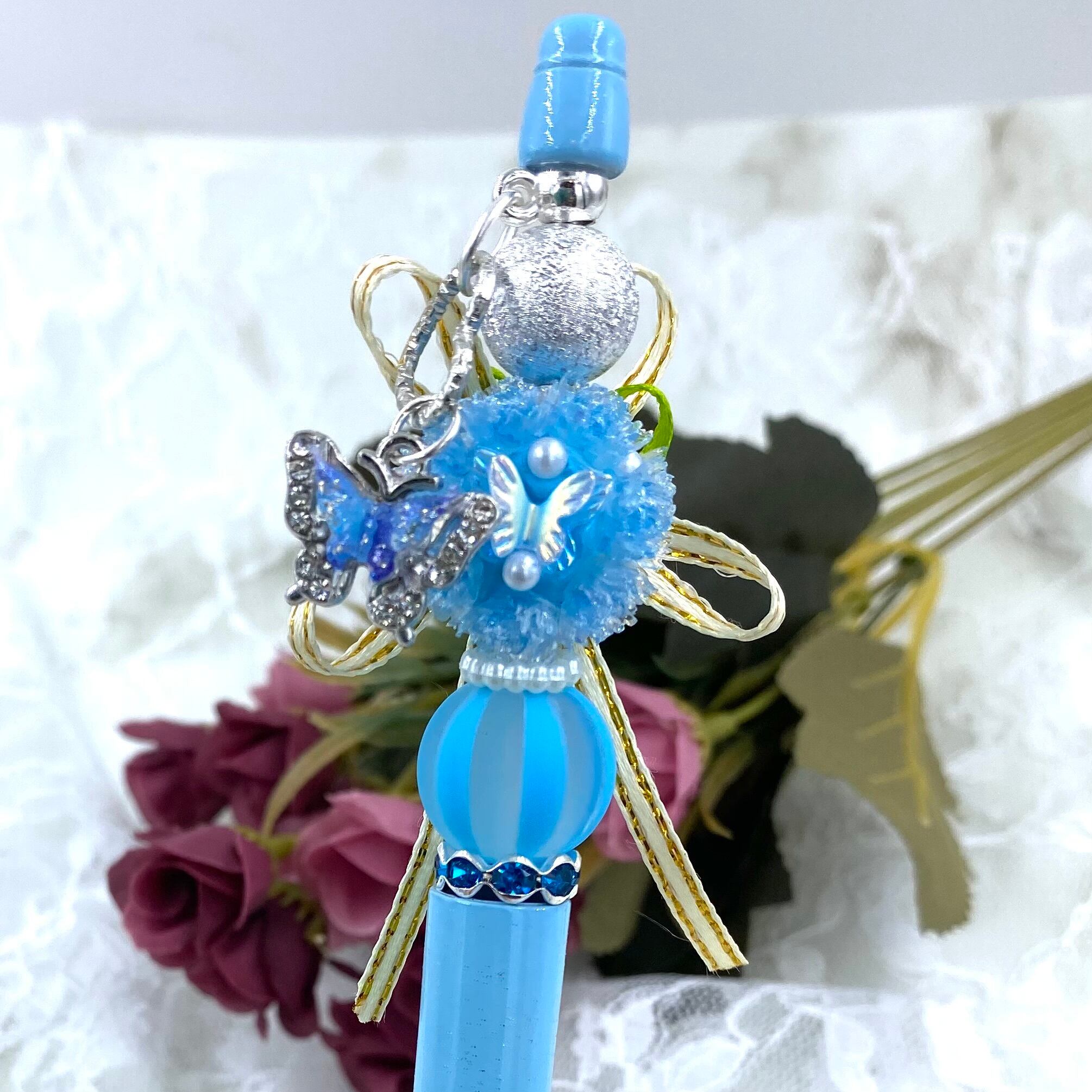 23 カスタムボールペン完成品 水色グラデ チャーム付き