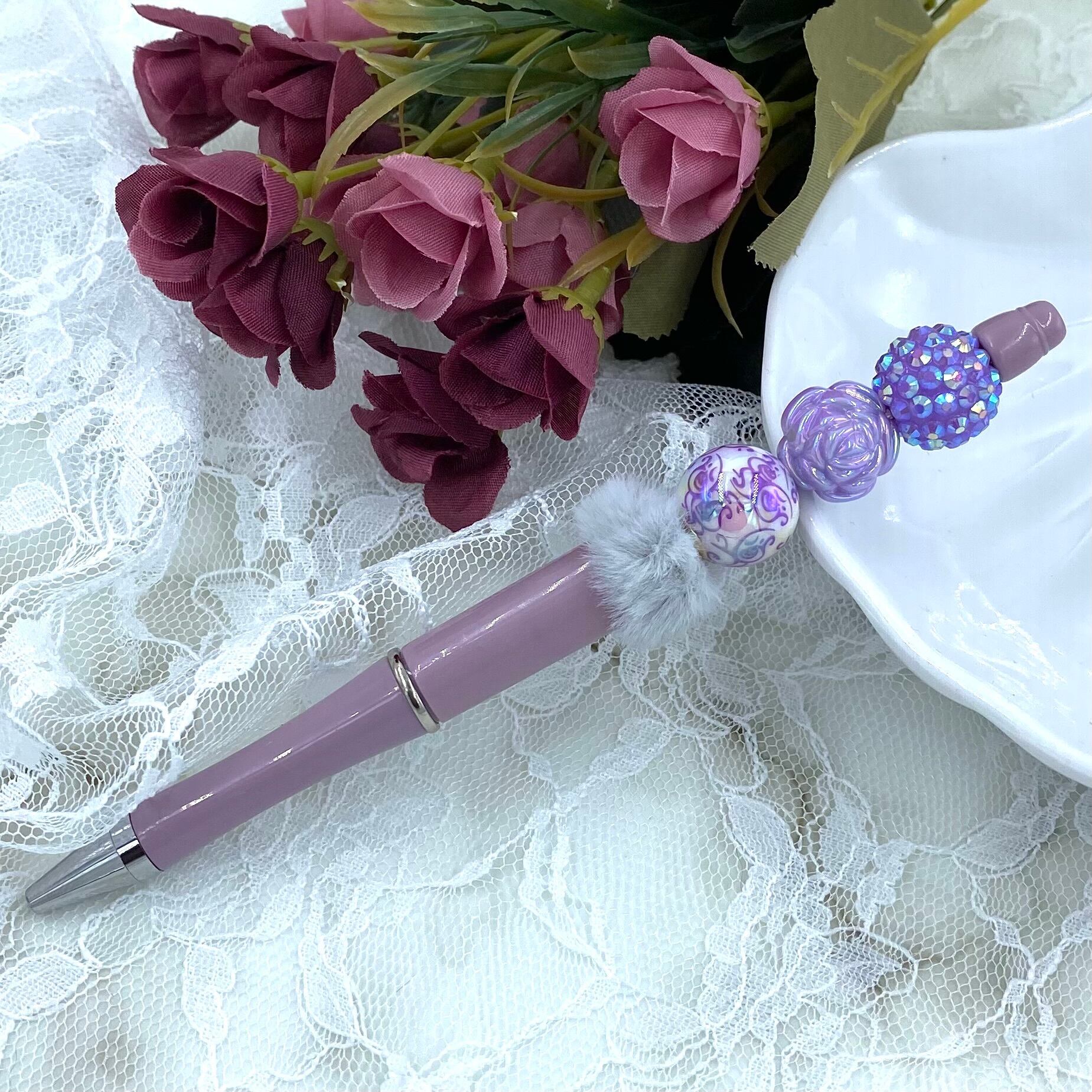 ・29 カスタムボールペン完成品 くすみカラーラベンダーカラー薔薇モチーフ