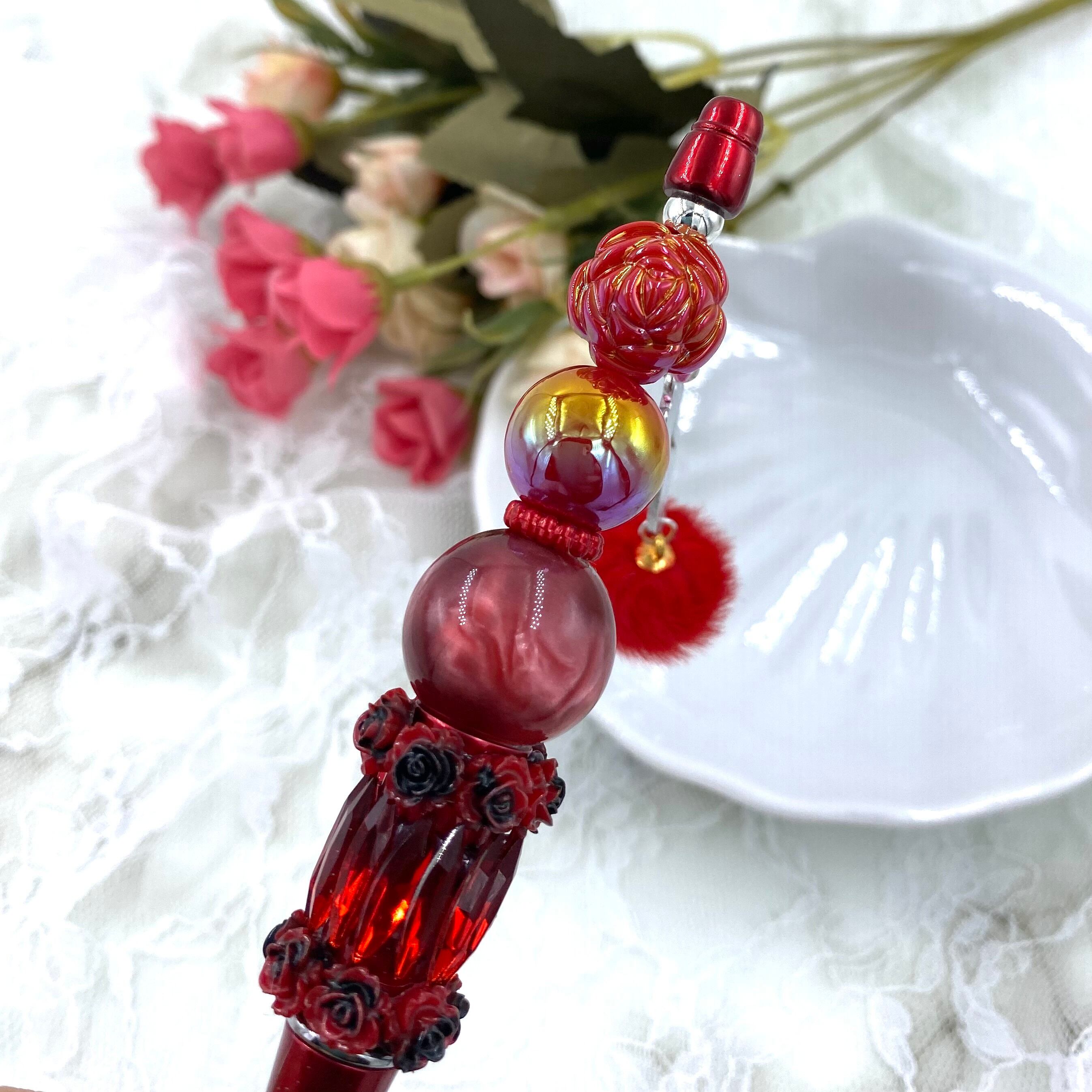 36 カスタムボールペン完成品 赤薔薇&インドビーズゴージャス チャーム付き