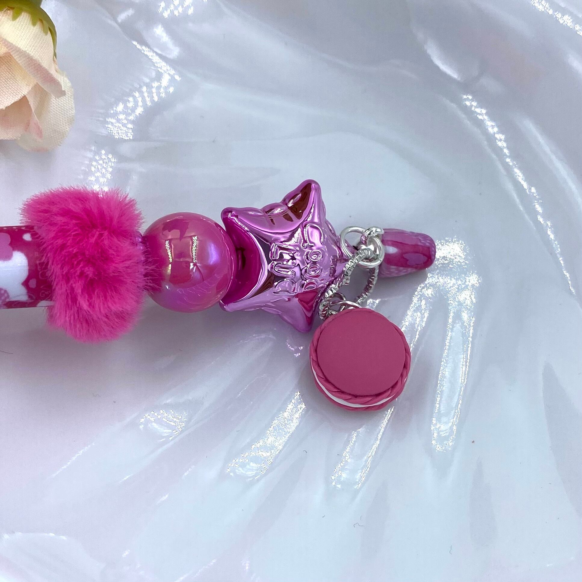 37 カスタムボールペン完成品 ピンクプリントキラキラ星 チャーム付き