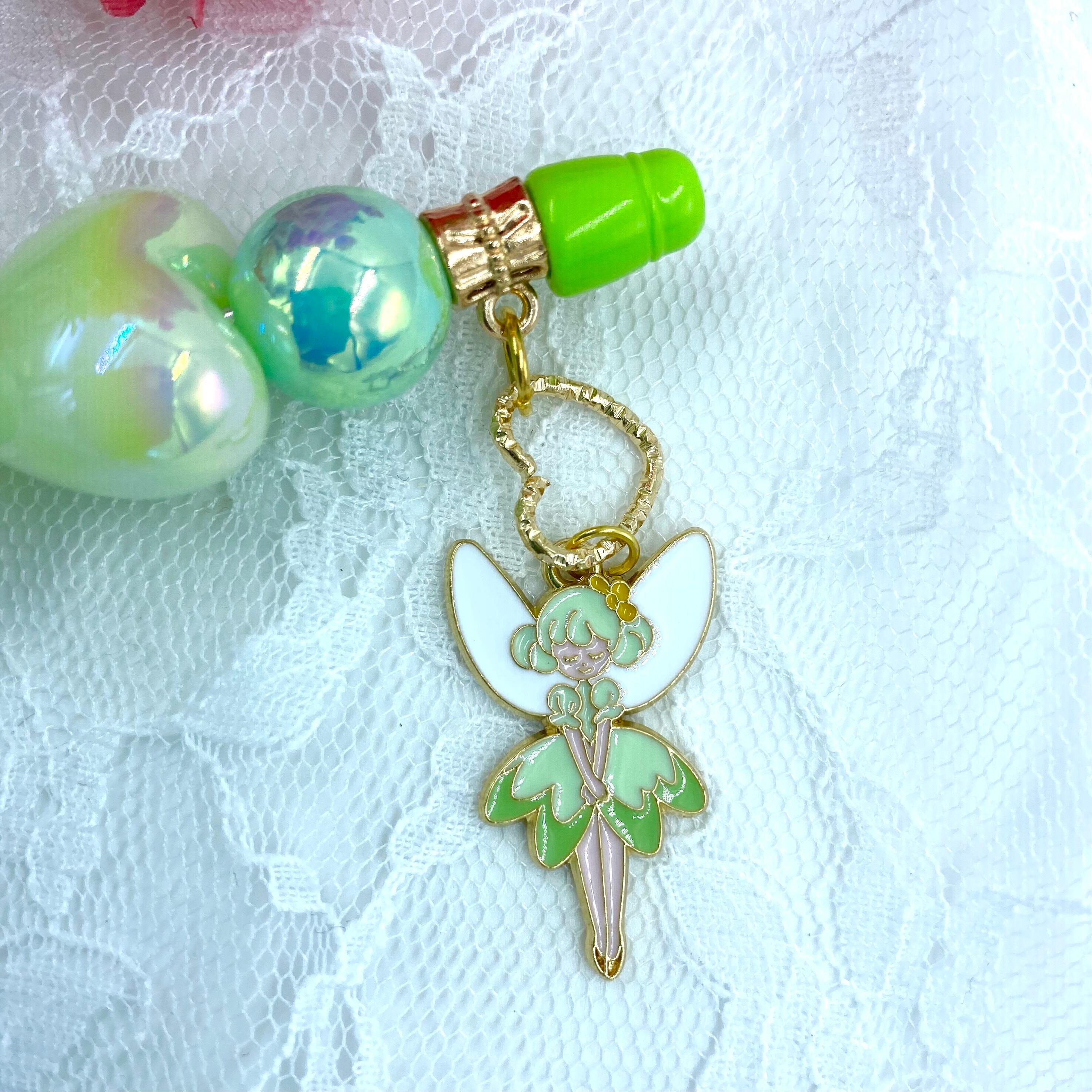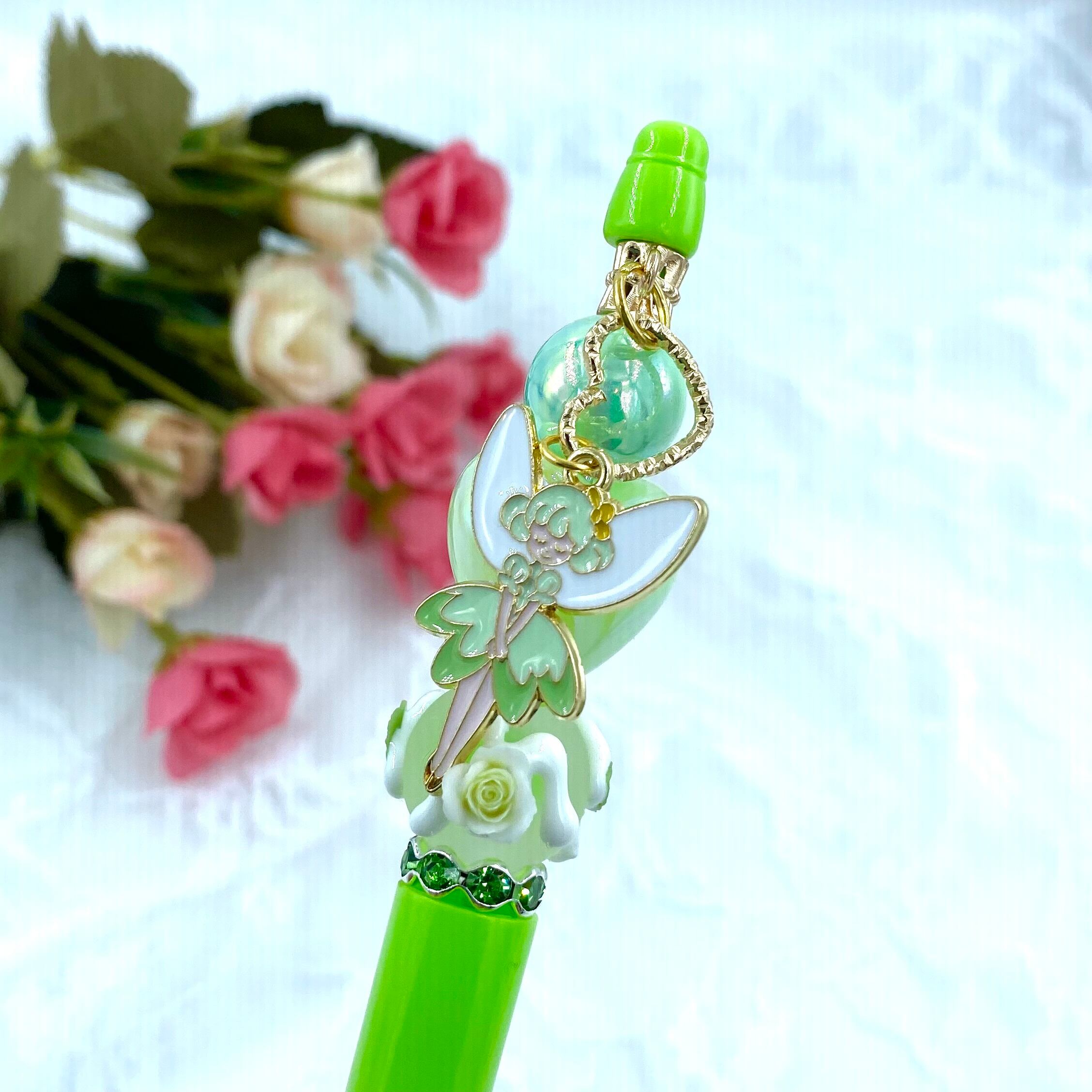 52 カスタムボールペン完成品 黄緑ハート手書き 妖精チャーム付き
