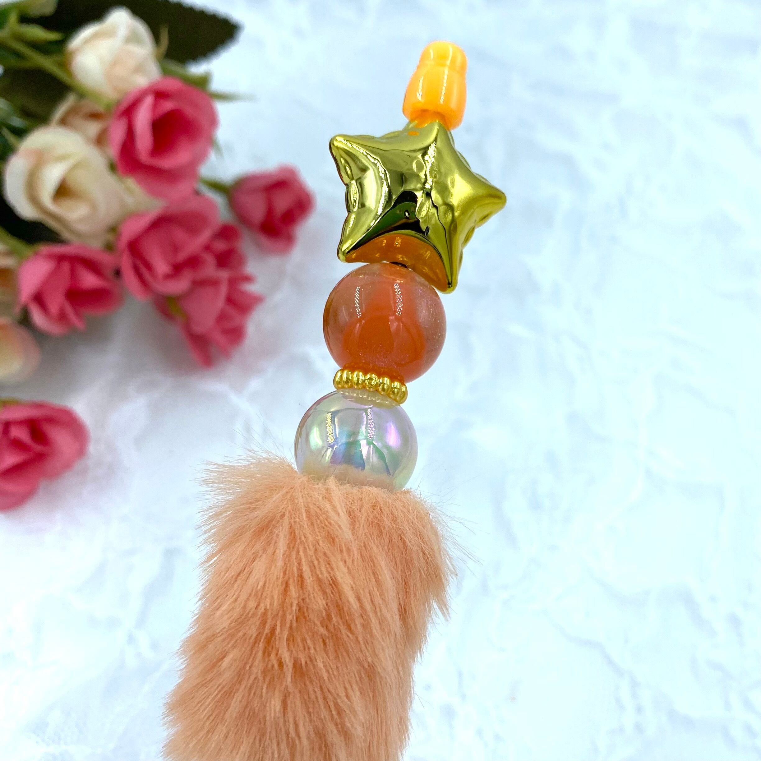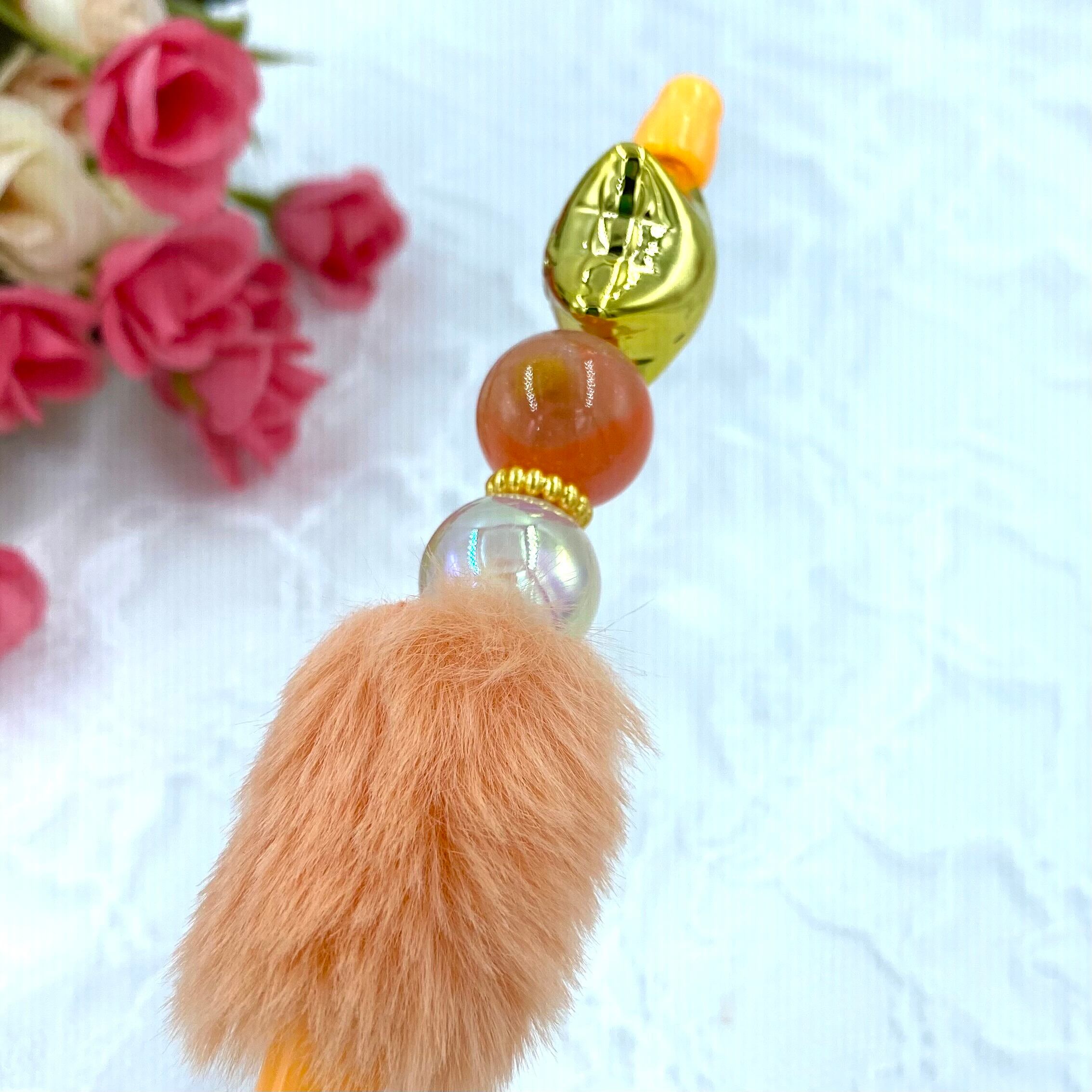 ・58 カスタムボールペン完成品 ファーオレンジ&キラキラゴールド星