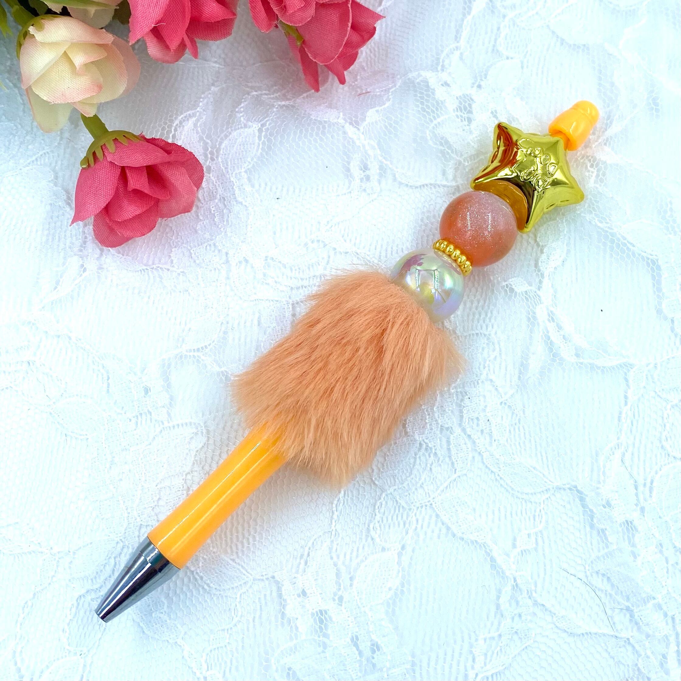 58 カスタムボールペン完成品 ファーオレンジ&キラキラゴールド星