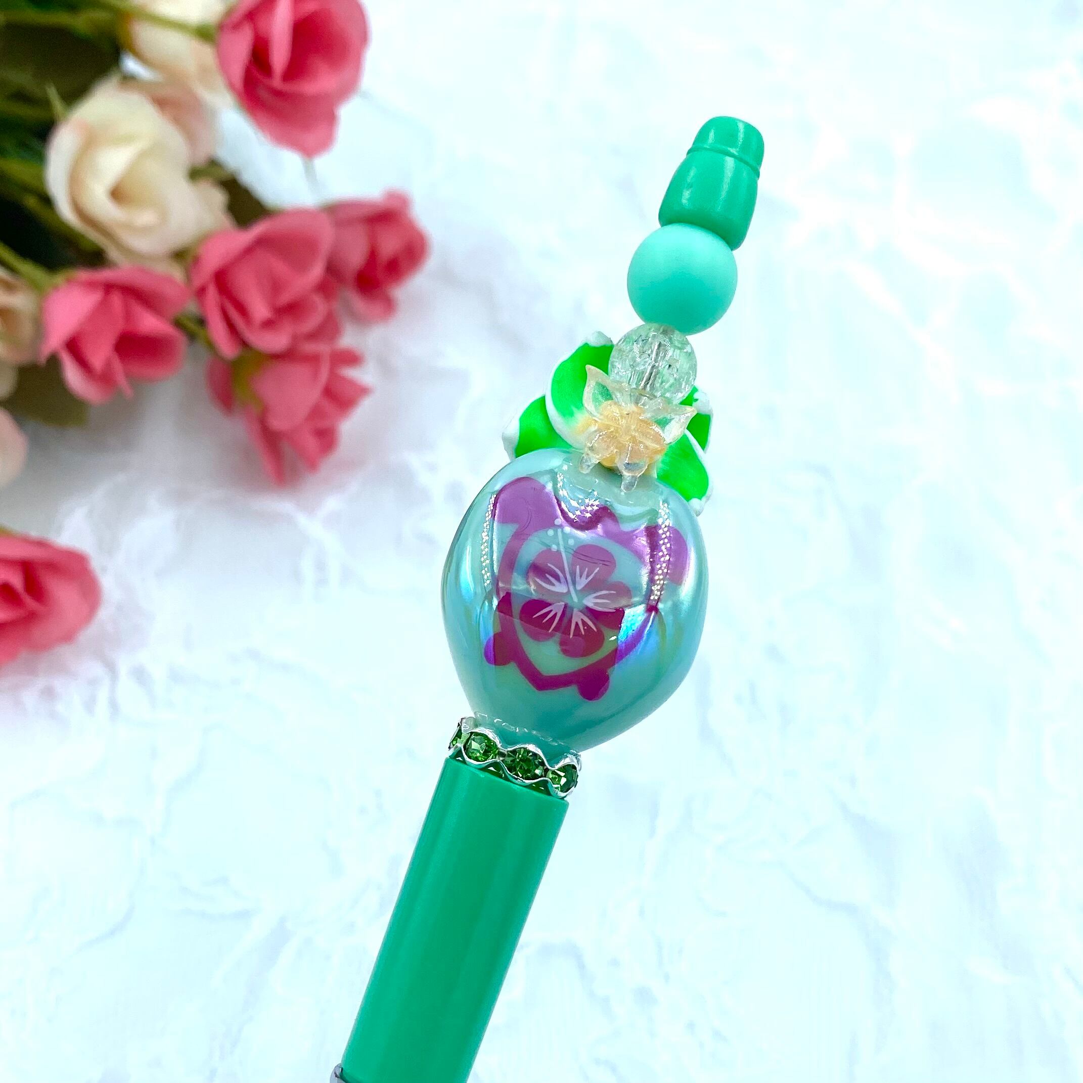 ・100 カスタムボールペン完成品 グリーングラデション・海亀&プルメリア
