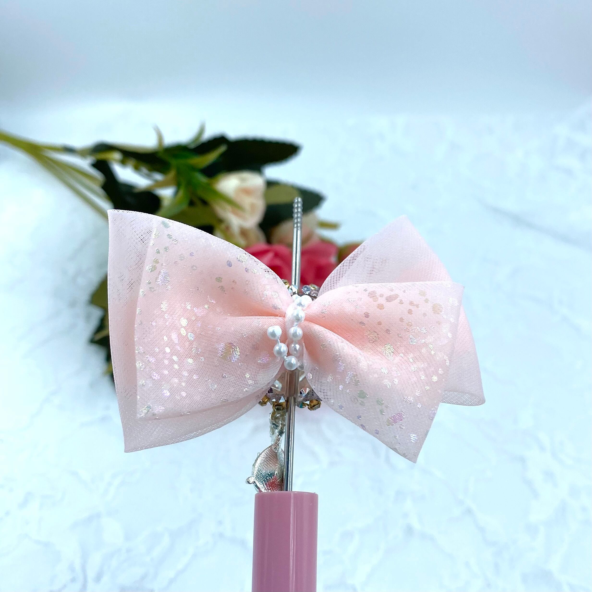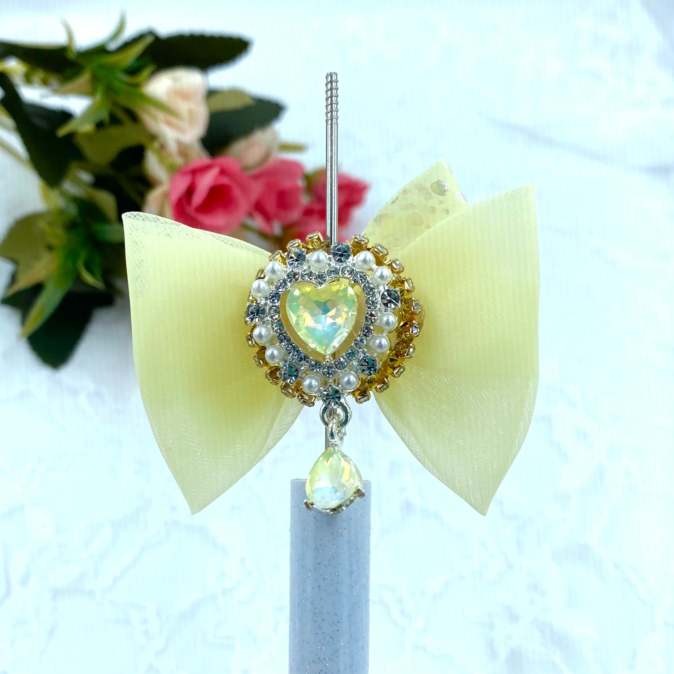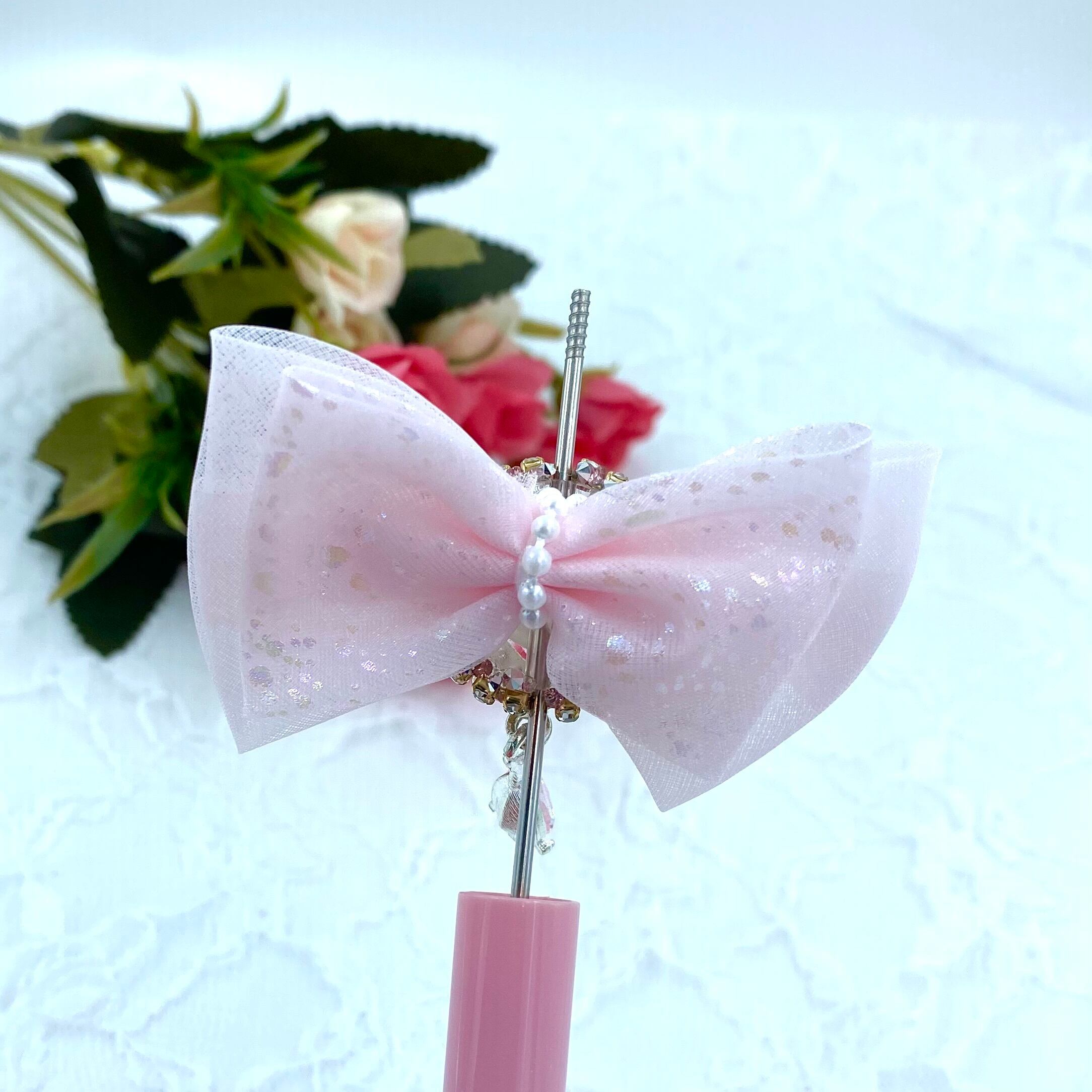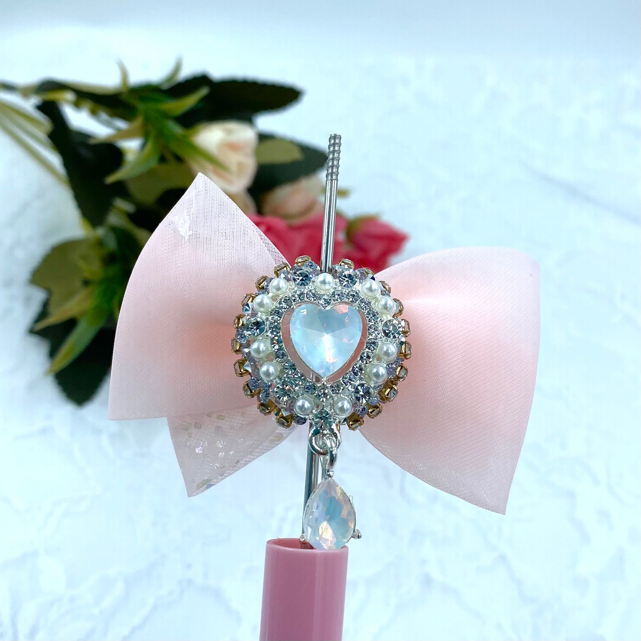 ・17-18 ハートシフォンリボン ファンシービーズ カスタム可
