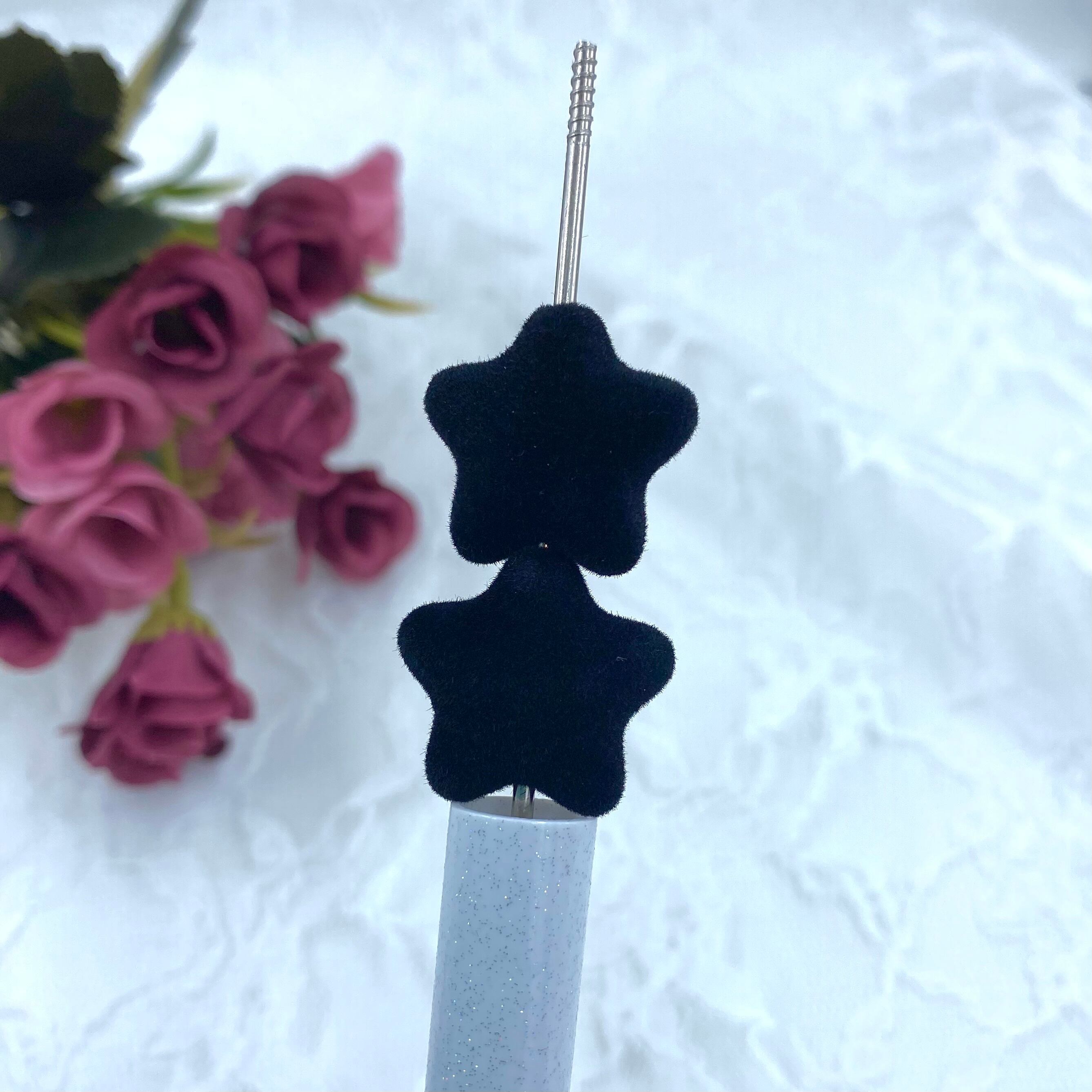 ・3-9 2個 黒ベルベット星ビーズ カスタムボールペン可