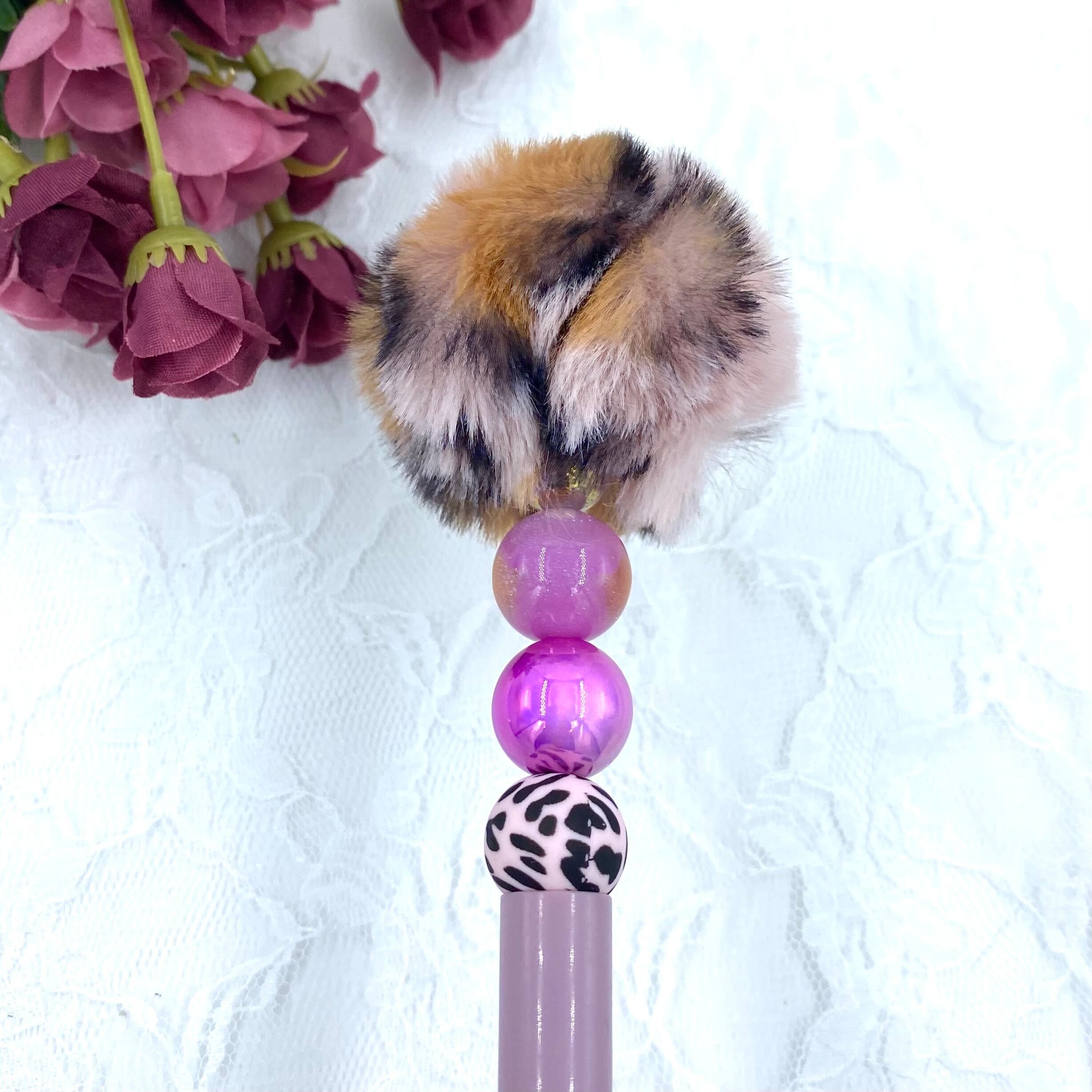 ・101 カスタムボールペン 完成品 ピンク&茶 ヒョウ柄ボンボン