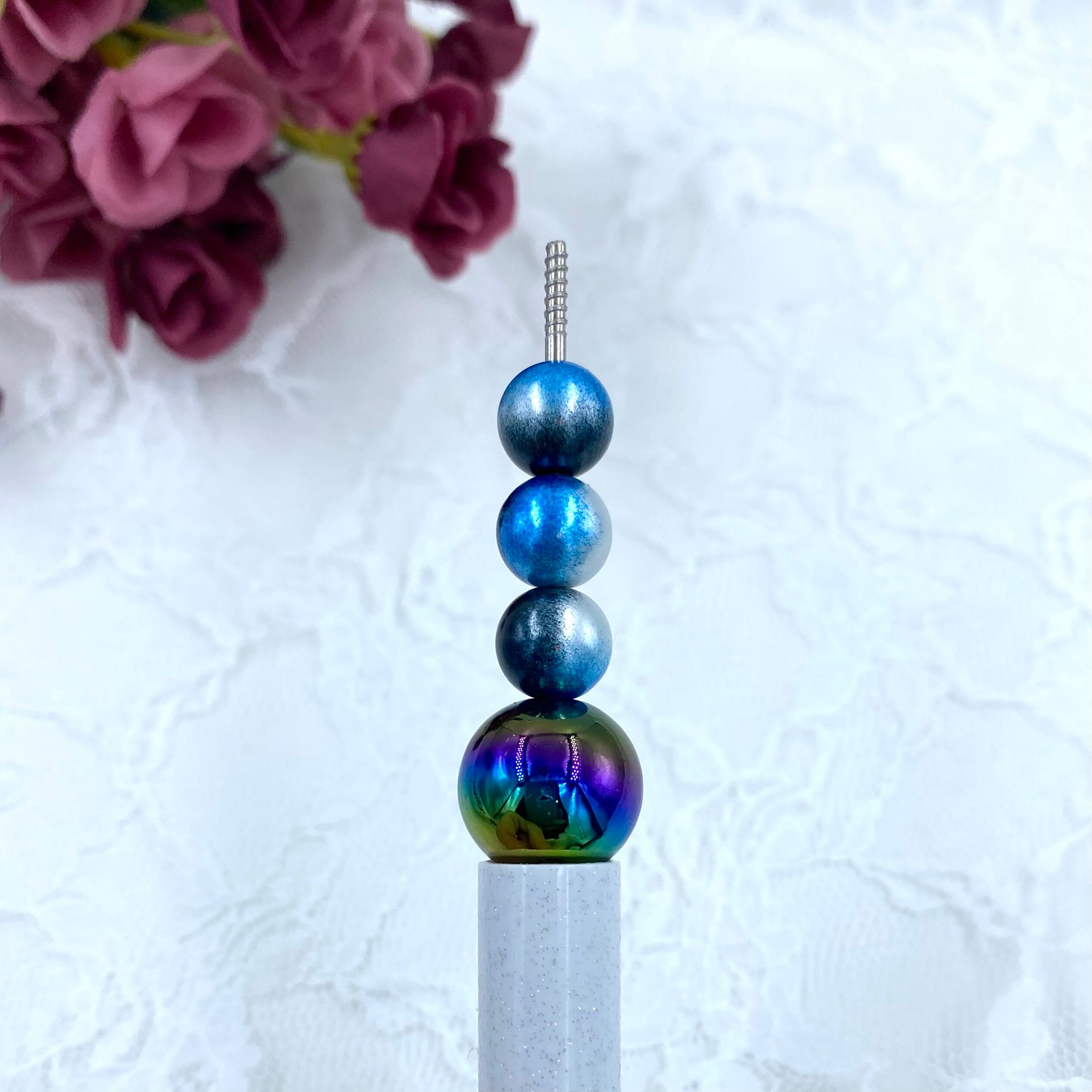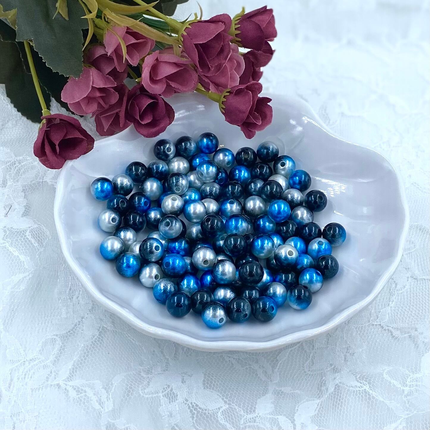 14-11 10mm グラデダークブルービーズ 10個 カスタム可